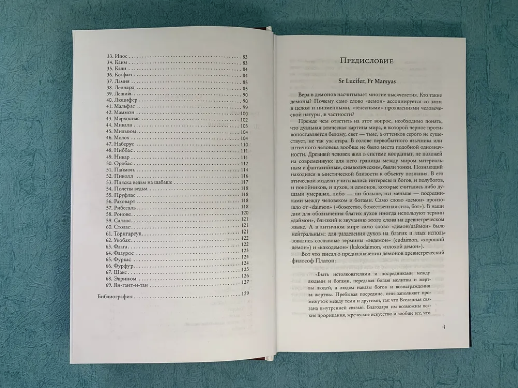 Структурную основу книги составили материалы из трех наиболее авторитетных источников по западной "демонографии": "Гоэтии" (первой части гримуара "Лемегетон, или Малый Ключ Соломона"), "Псевдомонархии демонов" Иоганна Вира и "Инфернального словаря" Коллена де Планси.