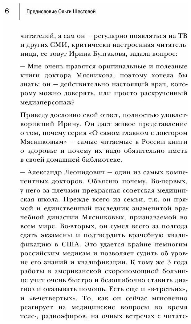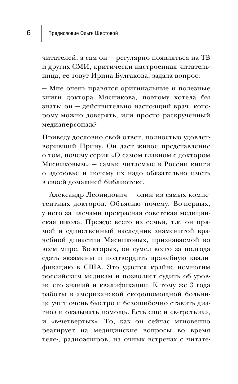 Доктор Мясников пишет, исходя из собственного неоценимого опыта, поэтому отношусь с огромным доверием. -