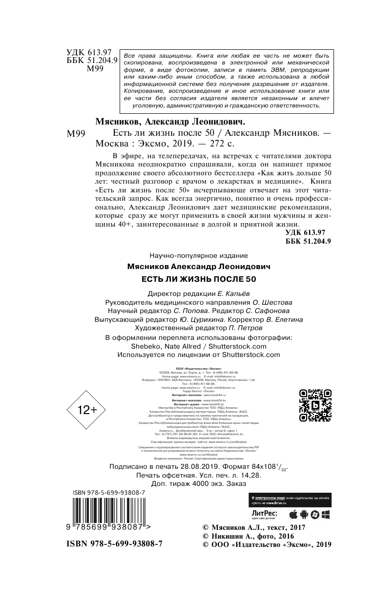 Книга: Есть ли жизнь после 50 (Александр Леонидович Мясников); Эксмо, 2019