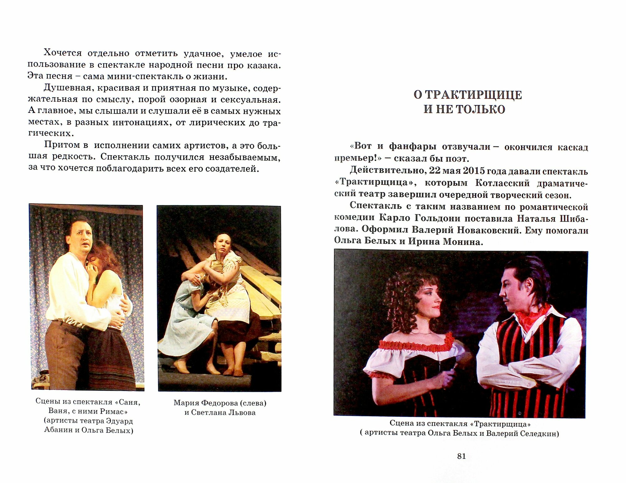 В книгу вошли эссе, выражающие впечатления автора от пьес, поставленных Котласским драматическим театром с 2009-го по 2016 г.