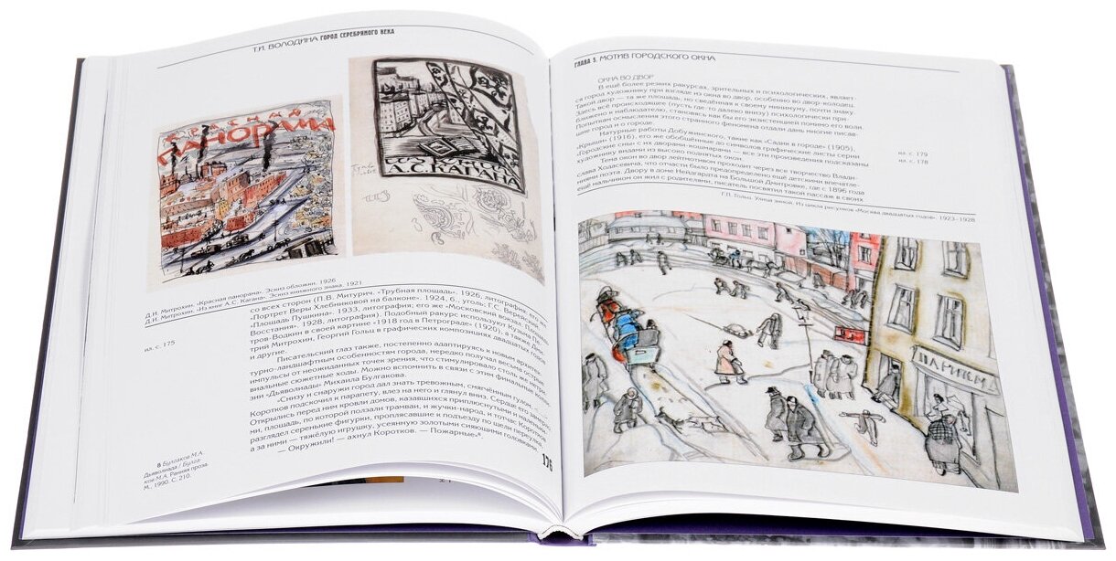 На одном дыхании книгу не прочтёшь - очень информационно насыщена. Читаю уже довольно долго, небольшими порциями, но никогда не возникало желания отставить подальше. Труд автора действительно вызывает уважение. Репродукции М. Шагала, М. Добужинского, П. Филонова, Н. Тархова, Б. Кустодиева, М. Соколова, К. Коровина, городские фотопейзажи, отрывки из произведений А. Белого, В. Брюсова, А. Блока, Е. Замятина и многих-многих других -- и рождается образ города начала XX в., агрессивного, недружелюбного к человеку, быстро меняющегося, тревожного, странного...