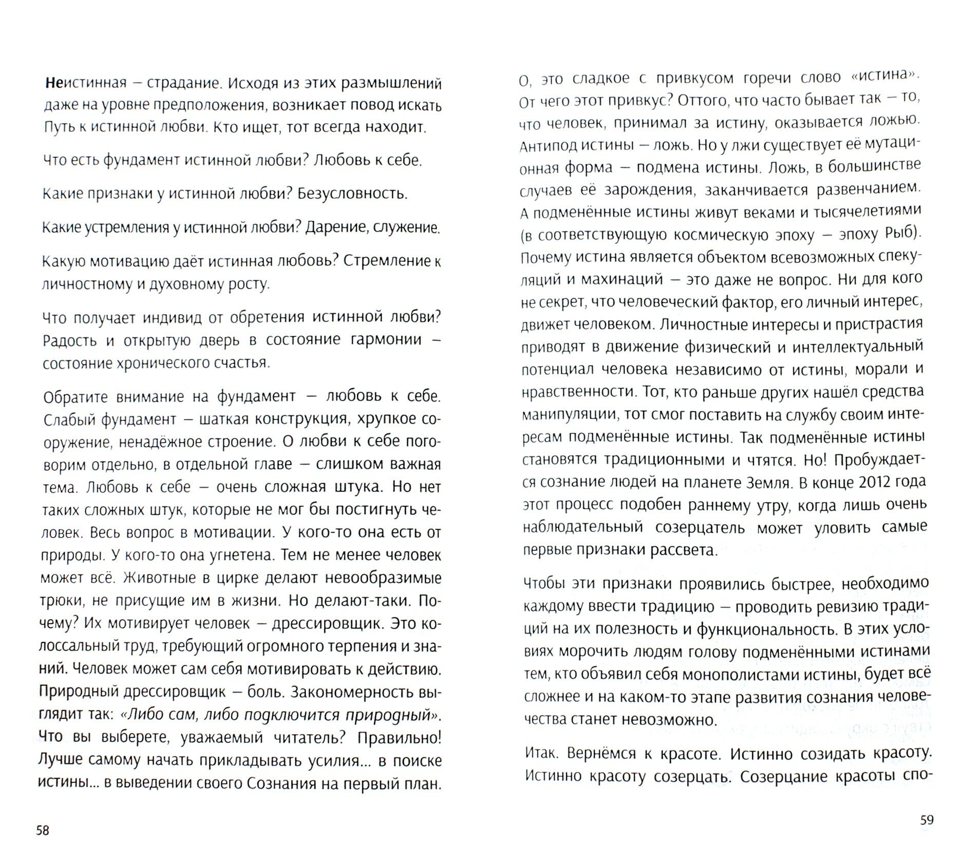 Чтобы разобраться в том, что такое "любовь" и что такое "любить", автор предлагает начать с фундамента, с исконного состояния - любви к себе. Только, чтобы к этому состоянию прийти, нужно встать на путь отделения зёрен от плевел, путь постижения истины. Это самостоятельный индивидуальный и довольно трудный путь.… Но, как известно, "к Небесам толпами не восходят".