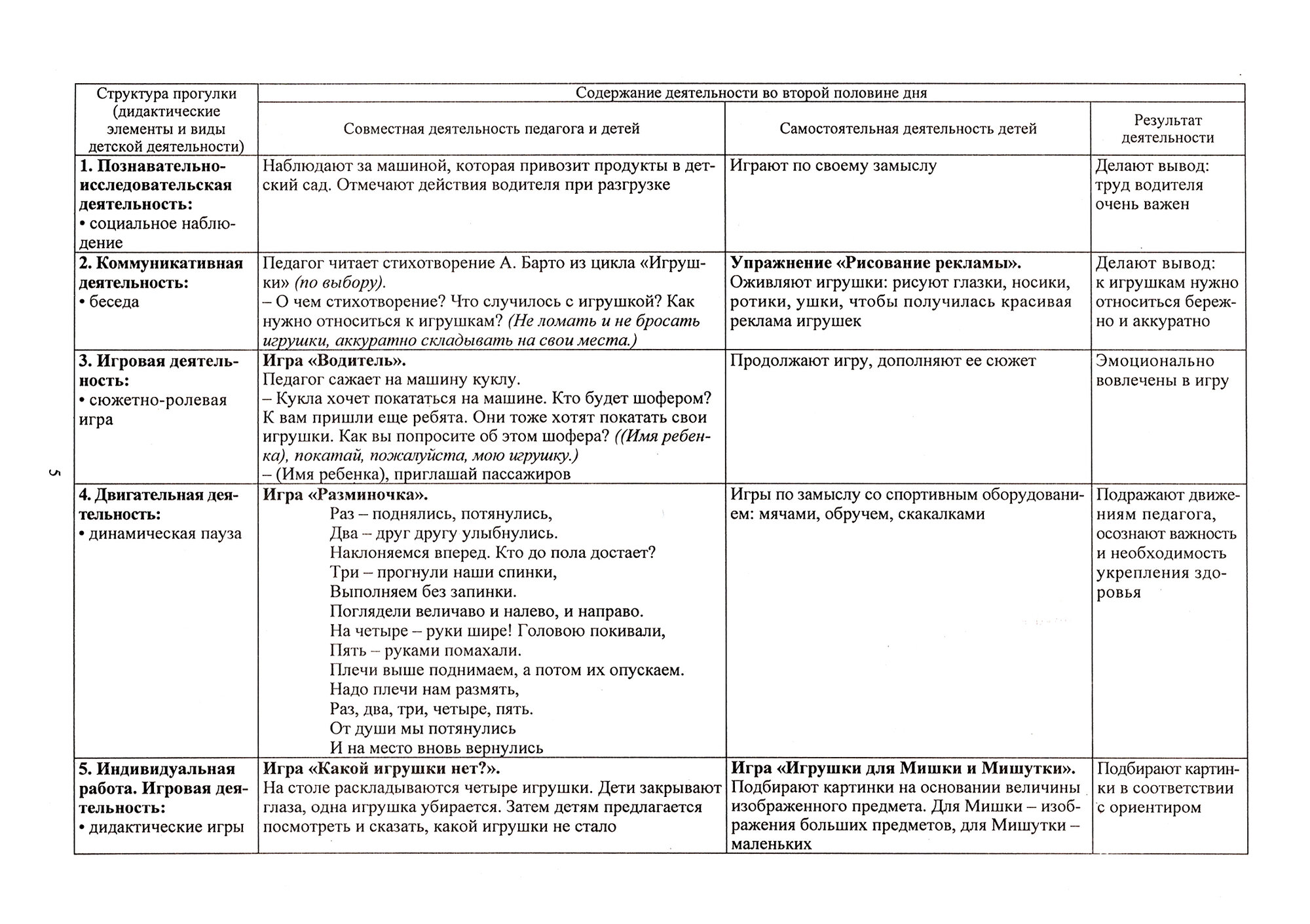 В картах каждой прогулки сформулированы педагогические цели, определены планируемые результаты - целевые ориентиры образования, раскрыты особенности игровой, коммуникативной, познавательно-исследовательской, двигательной деятельности детей, самообслуживания и элементарного бытового труда, предложен набор средств, позволяющих педагогам развивать познавательные, речевые и практические умения у младших дошкольников в процессе ознакомления с объектами и явлениями природы, формировать первичные представления о себе и других людях.