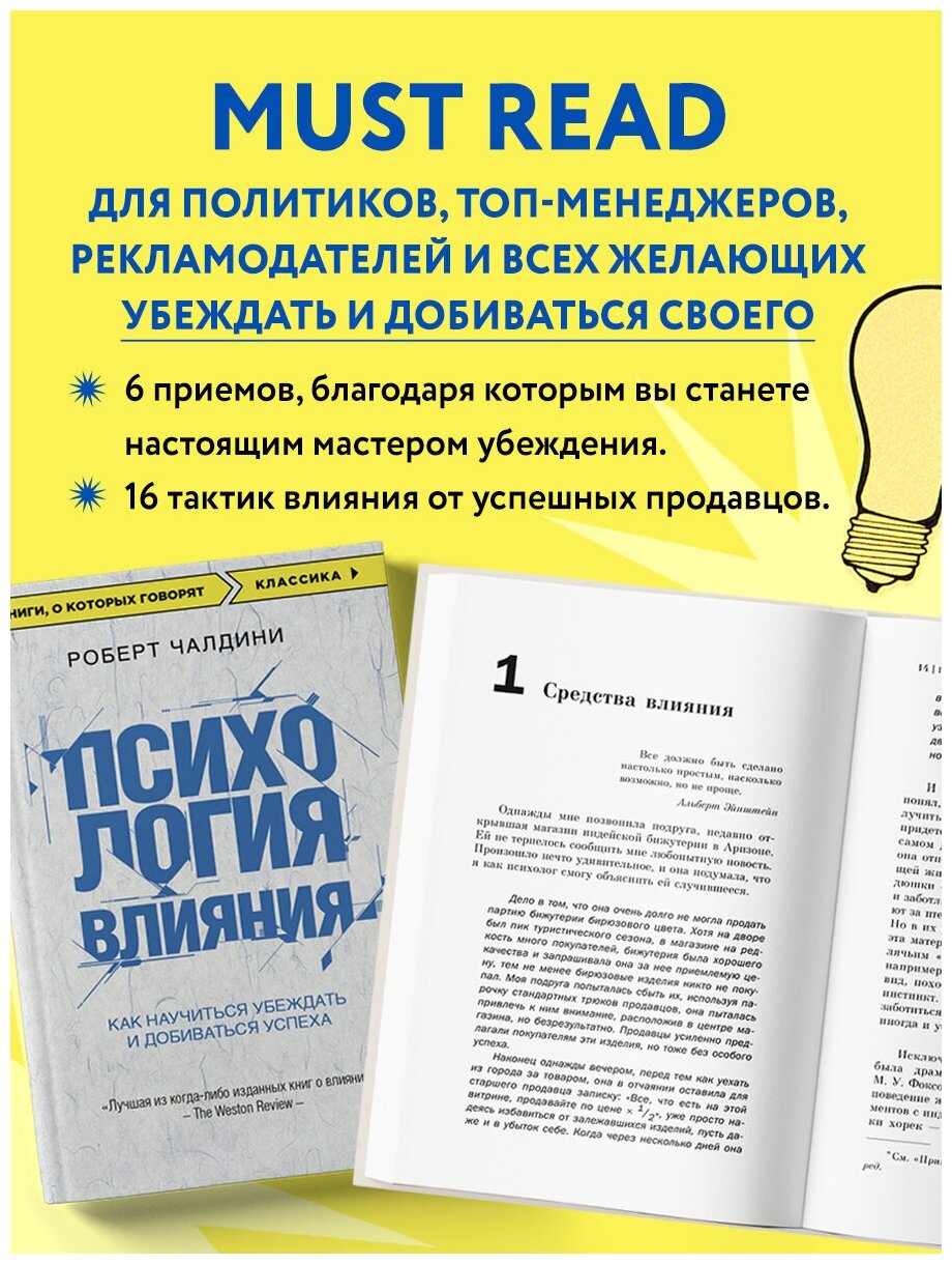 Автор книги, доктор наук и профессор психологии, Роберт Б. Чалдини много лет изучал принципы успешных продаж. На основе своих исследований он написал руководство по мотивации и убеждению, которое многие авторитетные периодические издания признали лучшей книгой о влиянии, когда-либо изданной.