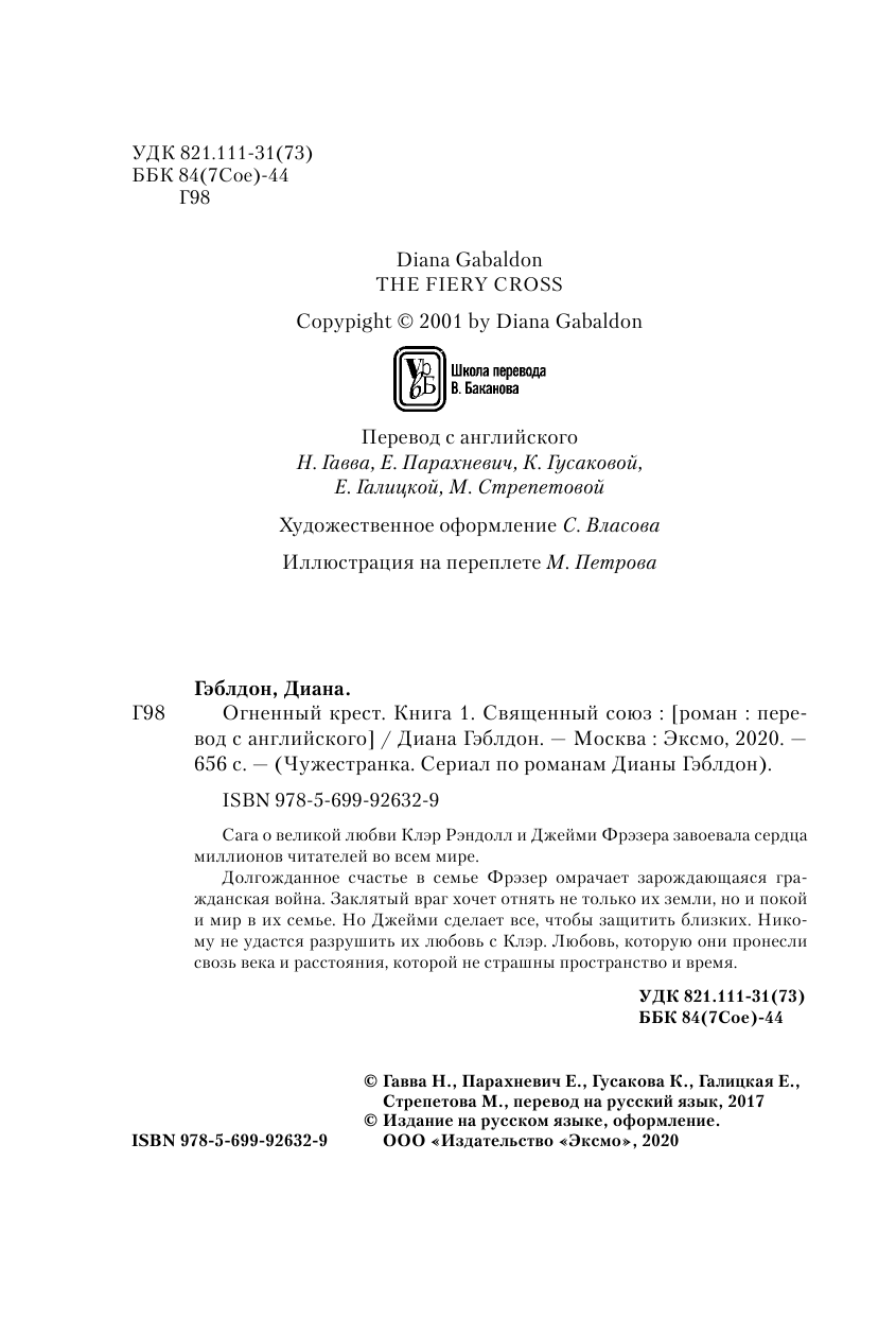 Огненный крест. Книга 1. Священный союз (Диана Гэблдон); Эксмо, 2020