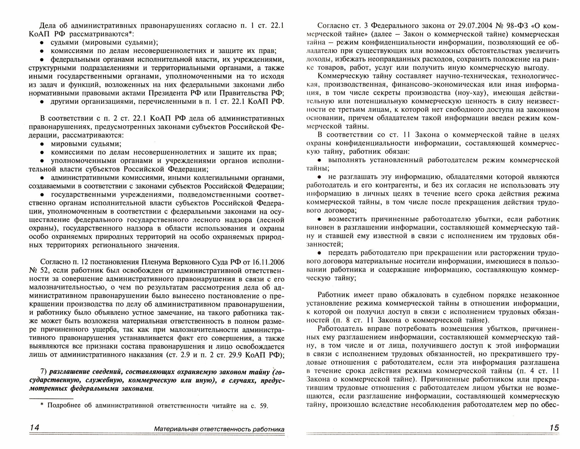 Впервые в отечественной практике в одной книге собраны правила применения различных видов ответственности работника перед работодателем и работодателя перед работником и государством. В ней на конкретных практических примерах объясняется, когда и чья наступает ответственность, какие документы должны оформляться в различных ситуациях, как применение материальной ответственности отражается в учете (бухгалтерском и налоговом), рассматриваются сложные случаи, приводятся примеры из арбитражной практики. Кроме того, в этой книге вы найдете образцы всех необходимых вам документов, а также рекомендации по их составлению.