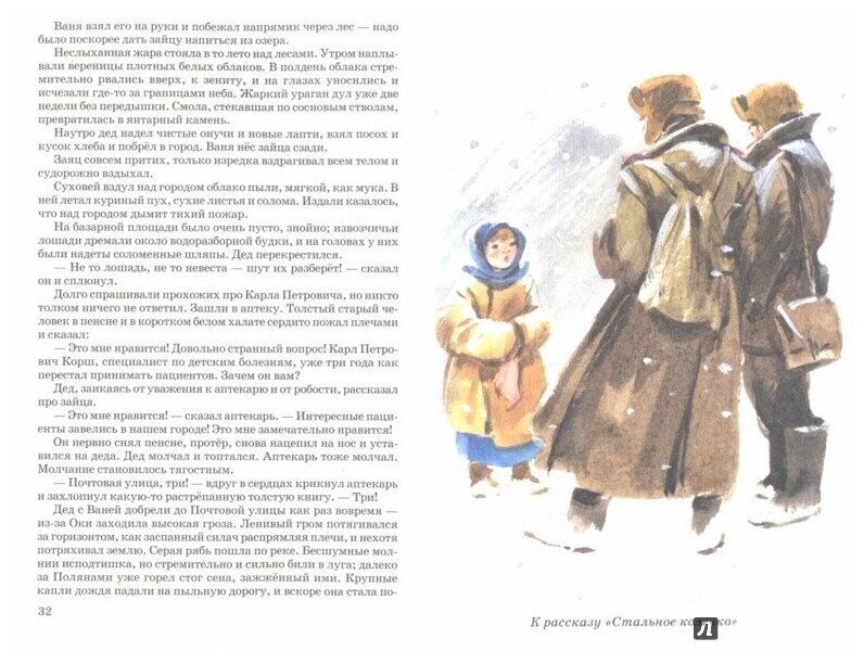 Книга содержательная, в ней собраны рассказы, которые понравятся детям разных возрастов, начиная от мала (6 лет) до велика (14 лет). Книга тонкая, а включено в нее множество рассказов и сказок, которые печатаются без сокращений, поэтому текст дан мелкий. Это, конечно, затрудняет чтение. Но, жажда узнать, чем же закончился очередной уникально написанный рассказ (сказка), подталкивает увлеченно с терпением читать дальше. В начале книги немного написано о важных датах в жизни Константина Георгиевича, это настраивает на чтение и улучшает понимание позиции автора. Я восхищена содержанием!