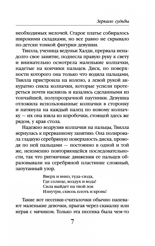 Юная ученица ведуньи Халди, целительница Твилла вынуждена покинуть свою покровительницу. На прощанье ведунья дарит девушке древний талисман - маленькое зеркальце - и магическое заклинание, способное разбудить его волшебную силу. Волею обстоятельств Твилла вместе с Илоном - ослепленным демонами сыном лорда Пограничья - оказывается в зачарованном лесу, где властвуют таинственные злые силы. Именно Твилле и Илону, избранным, с помощью чудодейственного талисмана предначертано раскрыть тайны колдовского леса и избавить волшебные народы от векового проклятия...