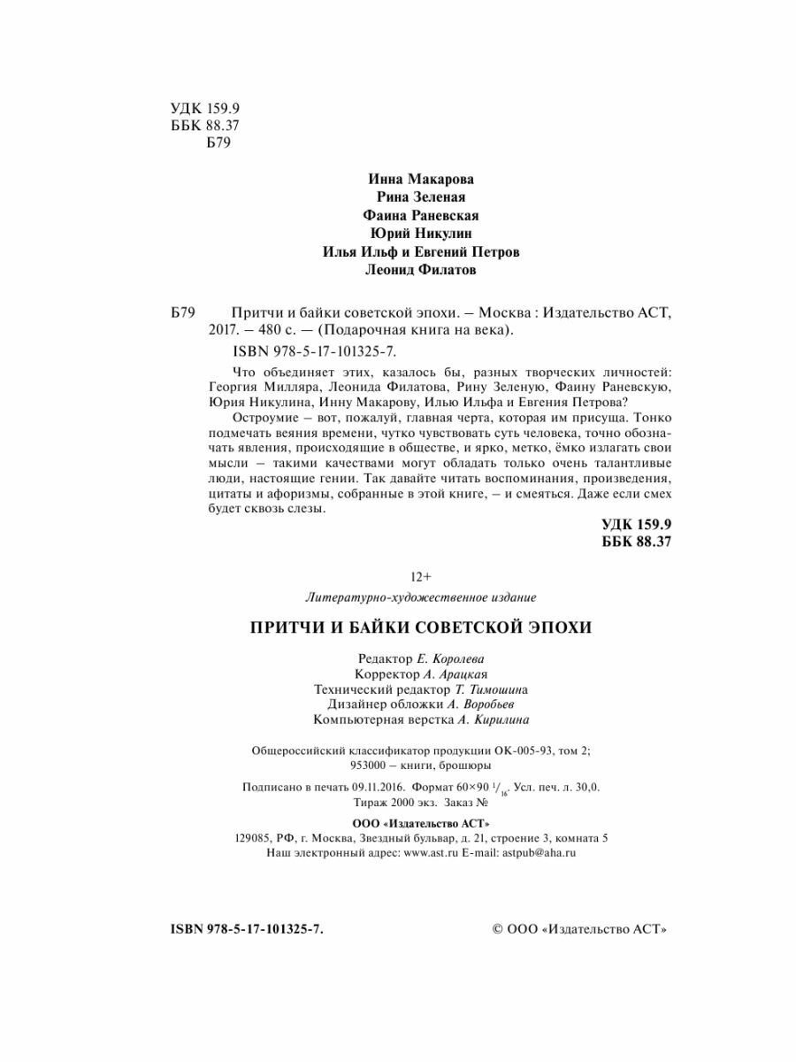 Притчи и байки советской эпохи (Ильф Илья Арнольдович, Петров Евгений Петрович, Зеленая Рина Васильевна, Филатов Леонид Алексеевич, Макарова Инна Владимировна, Милляр Георгий Францевич); ИЗДАТЕЛЬСТВО "АСТ", 2017