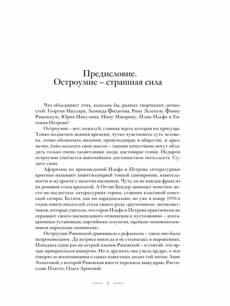 Остроумие - вот, пожалуй, главная черта, которая им присуща. Тонко подмечать веяния времени, чутко чувствовать суть человека, точно обозначать явления, происходящие в обществе, и ярко, метко, ёмко излагать свои мысли - такими качествами могут обладать только очень талантливые люди, настоящие гении. Так давайте читать воспоминания, произведения, цитаты и афоризмы, собранные в этой книге, - и смеяться. Даже если смех будет сквозь слезы.