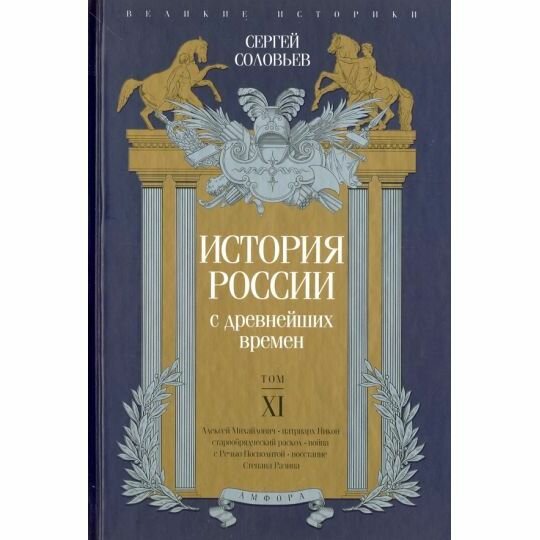 Эта книга включает в себя одиннадцатый том "Истории России с древнейших времен" - главного труда жизни С.М.Соловьева. Том посвящен продолжению царствования Алексея Михайловича Романова: смуте в Малороссии, войне с Речью Посполитой, церковной реформе патриарха Никона, Соловецкому восстанию и Крестьянской войне под предводительством Степана Разина.