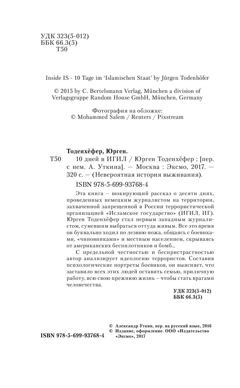 Книга: 10 дней в ИГИЛ (Юрген Тоденхёфер); ООО "Издательство "Эксмо", 2017
