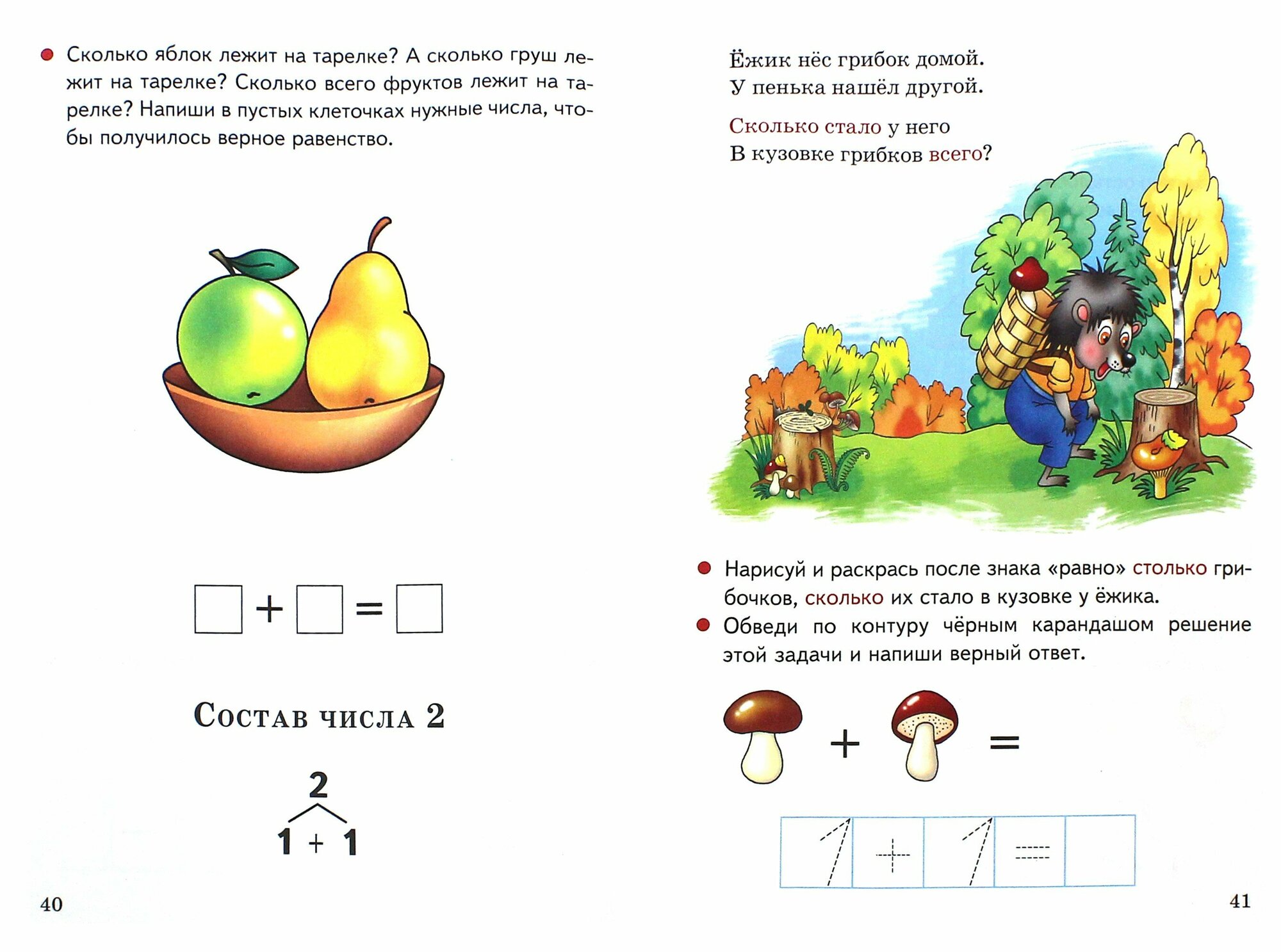 Дети также познакомятся с действиями "сложение" и "вычитание", научатся решать равенства, используя данные действия с опорой на знание состава чисел, и сравнивать числа, применяя знаки неравенства > и