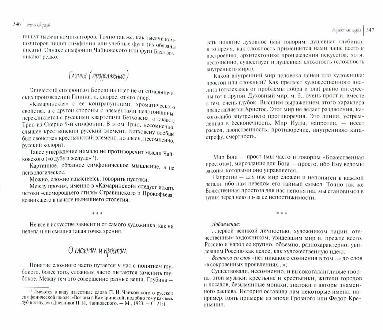 Книга дневниковых записей Георгия Свиридова, которой издатели дали название «Музыка как судьба», вышла в 2002 году и стала важным событием в русской культуре. И не только в музыке, хотя Свиридов, без сомнения, один из крупнейших композиторов ХХ века, но и в культуре в более широком смысле – его размышления вписаны в контекст литературы, философии, общественных споров 60 – 90-х годов, к которым относятся дневники. В новом их издании добавлены записи 1963 и 1984 года, что расширяет наши представления о творчестве композитора и эволюции его взглядов. Эти взгляды стали, пожалуй, главным, что поразило читателей первого издания – знаменитый советский композитор оказался на деле предельно «несоветским», настроенным весьма критично и к окружающей действительности, и к корифеям тогдашней культуры, прежде всего к представителям модернизма и постмодернизма. Своим упрямым консерватизмом, защитой исконных, национальных корней музыки и культуры вообще Свиридов оказался близок «патриотическому» направлению общественной мысли, которое после выхода дневников прочно зачислило его в свои союзники. На самом деле мировоззрение его шире узко понятого патриотизма: оно питается богатствами мировой культурной традиции, отвергая как попытки загнать ее в национальные «резервации», так и нарастающее стремление «демократизировать» ее, а на деле – огрубить и опошлить. Мысли композитора на эту тему будут интересны читателям любых взглядов и возрастов, прежде всего тем, кто видит в недавней, но уже изрядно забытой «свиридовской» эпохе корни наших нынешних достижений и проблем.