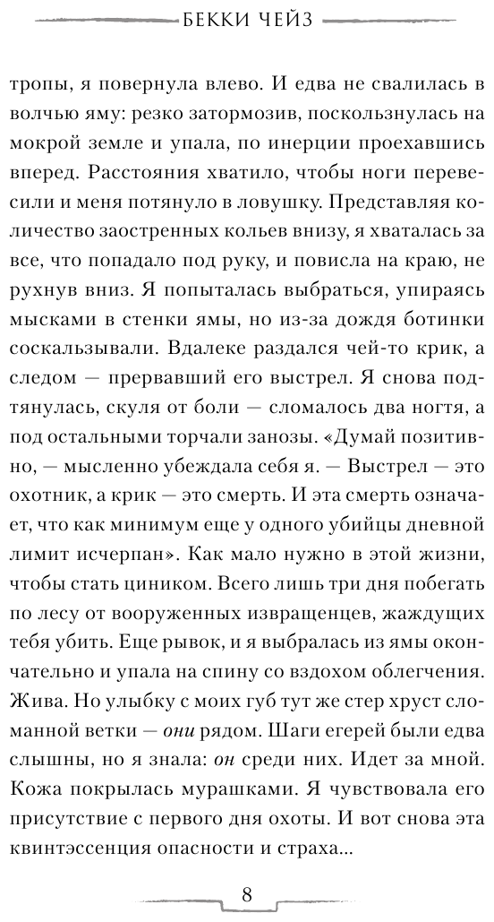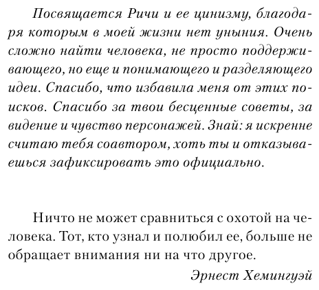 Они играют человеческими жизнями, организовав под видом шоу настоящую охоту за людьми. Дина попала в число жертв совершенно случайно, и у нее фактически нет шанса выжить. Казалось, ничего хуже уже быть не может. Но странное притяжение к Джейсону, главному из загонщиков, окончательно выбивает у нее почву из-под ног. Может ли жертва влюбиться в охотника? Может ли охотник пощадить свою добычу? Теперь девушке придется пройти суровую школу выживания.