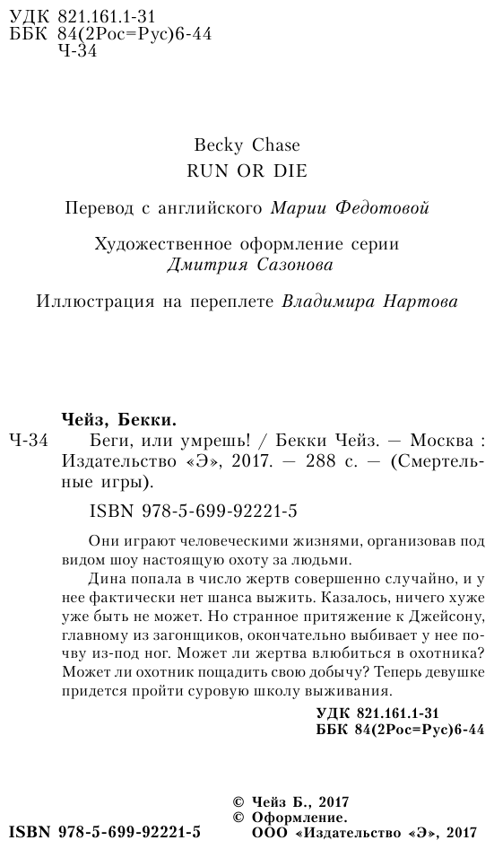 Книга: Беги или умрешь! (Бекки Чейз); Эксмо, Редакция 1, 2017