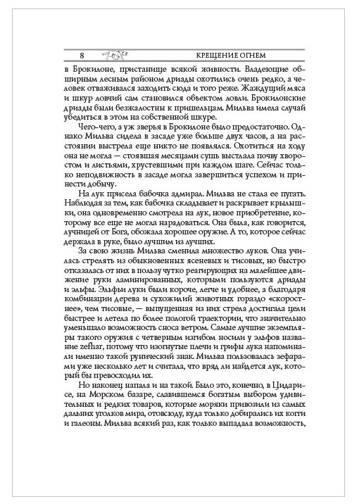 Огонь полыхает над разоренными войной землями, пожирая целые народы и стирая с карт границы прежних государств. И по этим горьким землям, заполненным беженцами и дезертирами, солдатами и мародерами, чудовищами и людьми, что в единый миг стали зверее зверя, идет беловолосый ведьмак - с мечом за спиной и искрой надеждой в сердце. Идет, сам толком не зная, куда. Идет, потому что не может не идти. Но, чтобы осилить этот путь, нужно выдержать крещение огнем. Испытание на прочность. Испытание на верность. Испытание, из которого никто не выйдет прежним…