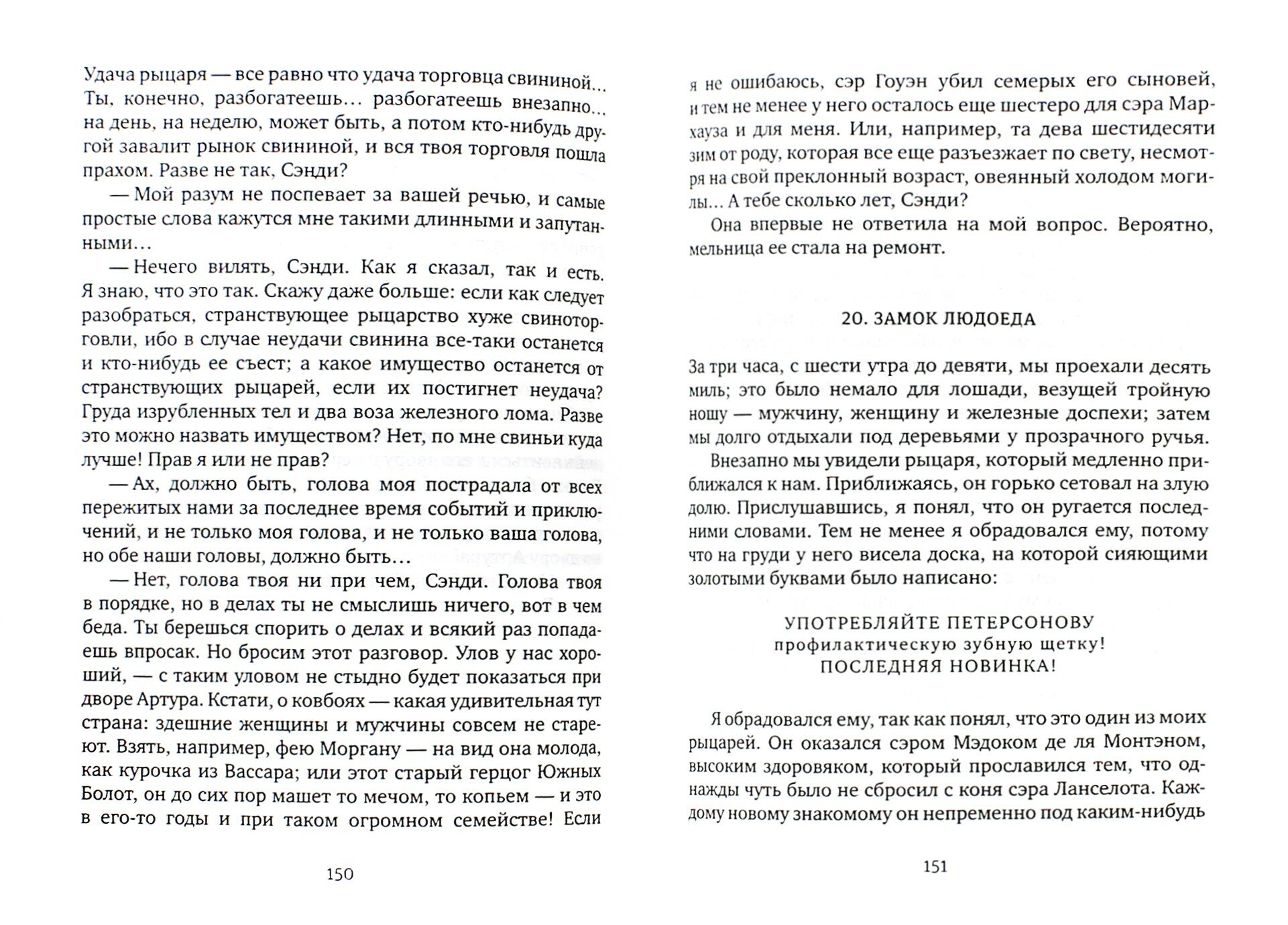 "Первый по-настоящему американский писатель" - так назвал Марка Твена Уильям Фолкнер. Мастер народных баек и путевых очерков, комических картин нравов и философских притч, историй об ангелах и скачущих лягушках - Твен умел говорить обо всем, что есть на этом (и на том) свете. Если "Приключения Гекльберри Финна" были самой важной книгой Марка Твена для первой половины ХХ века, то "Янки из Коннектикута при дворе короля Артура" (1889) - едва ли не самая актуальная для наших дней. Современники читали роман как пародию на "артуриану", сатиру на "феодальные" нравы викторианской Англии и прославление американской демократии, но спустя почти сто тридцать лет вполне очевидно, что великого юмориста интересовали куда более серьезные вопросы. Может ли один человек изменить ход истории? Возможно ли целую страну, целую эпоху научить думать по-новому, если людей веками учили не думать вообще? И какую цену придется платить за социальные эксперименты? Смешная и трагичная, циничная и трогательная книга Марка Твена - история первого "попаданца" задолго до того, как они заполонили книжные полки.