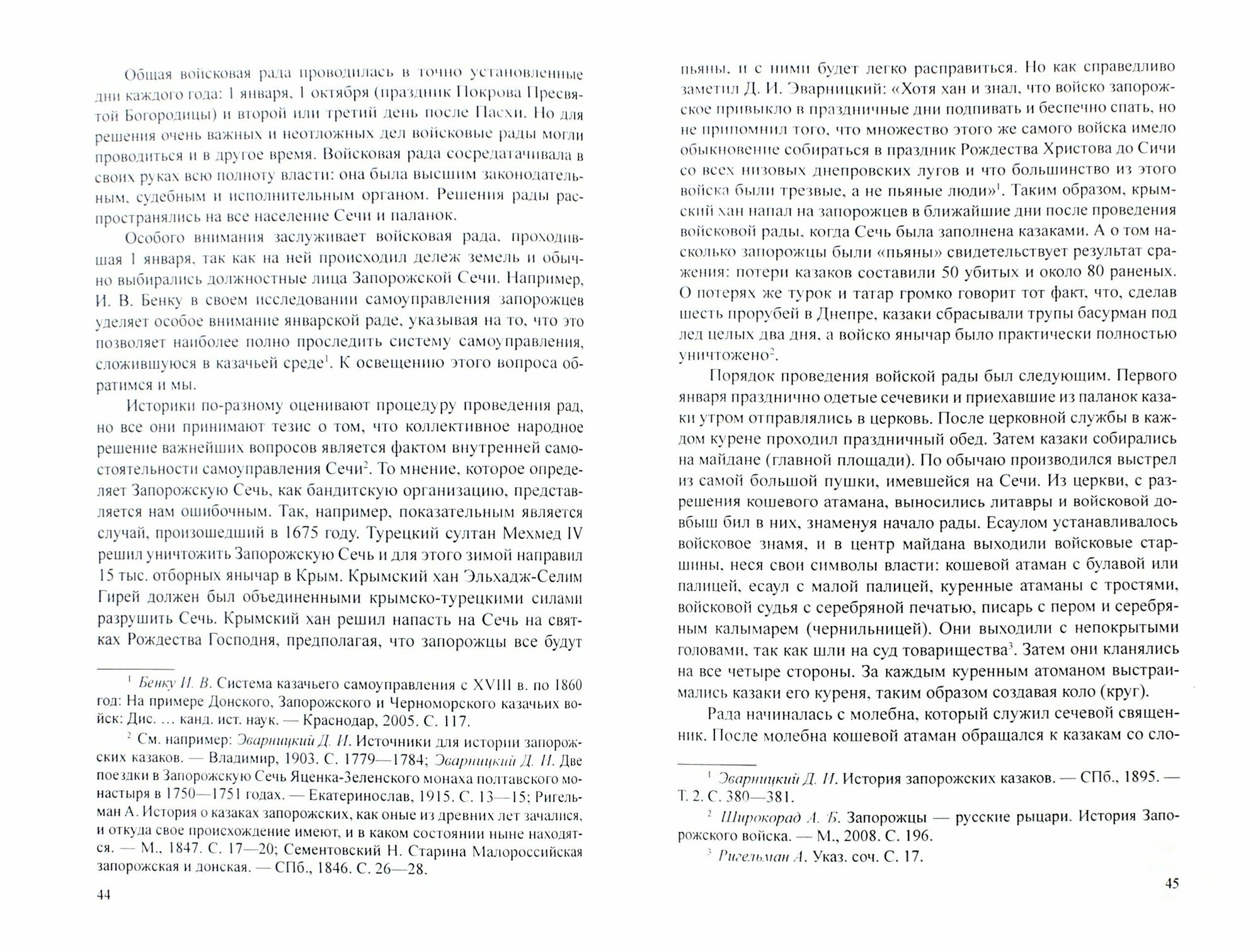В монографии рассматривается система казачьего самоуправления в рамках российской государственности на примере Запорожской Сечи в середине ХVII-XVIII вв.