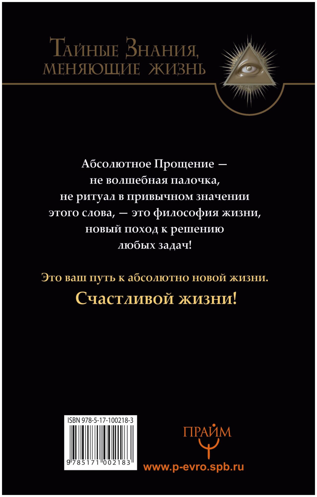 Методика Абсолютного Прощения, тренинг по которой предлагается вам в этой книге, не волшебная палочка, не ритуал в привычном значении этого слова, - это философия жизни, новый подход к решению любых задач. Использовать любые методики, обещающие успех, и ничего не менять в себе - очень часто пустая трата времени, это как пытаться переплыть океан в дырявой шлюпке. Автор тренинга расскажет вам, не как латать старую шлюпку, а как превратить ее в прекрасную прочную бригантину. Изменив свой взгляд на мир, на возможность иначе разрешать проблемы, вы сможете перестать тратить энергию на преодоление негатива и получите возможность заняться по-настоящему интересными для вас делами.