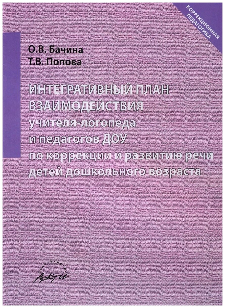 Интегративный план взаимодействия учителя-логопеда и педагогов ДОУ по коррекции и развитию речи (Бачина Ольга Викторовна, Попова Т. В.); АРКТИ, 2018