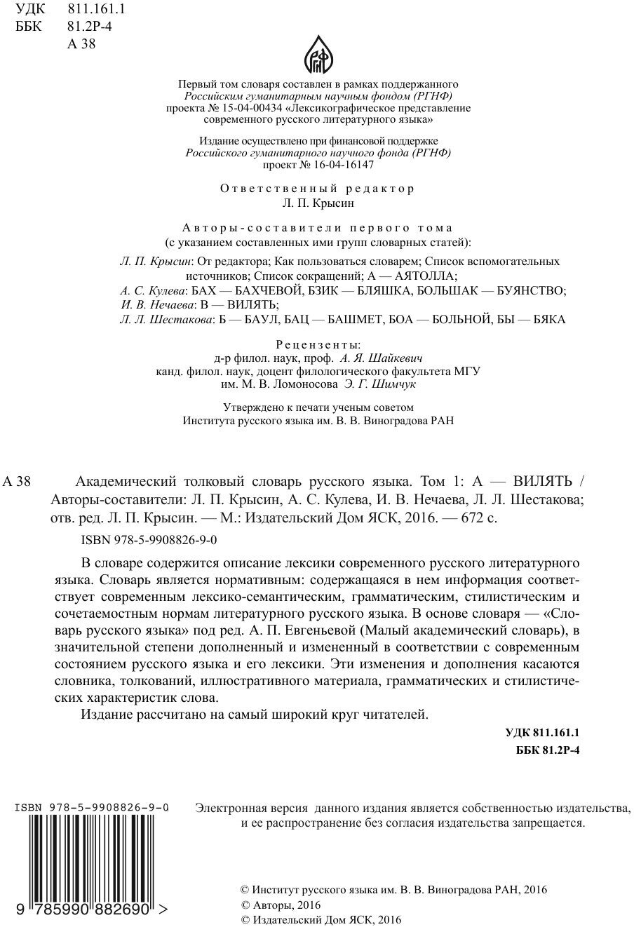 Академический толковый словарь русского языка. Том 1. А - Вилять (Крысин Леонид Петрович, Нечаева И. В., Кулева Анна Сергеевна); Языки славянских культур, 2016