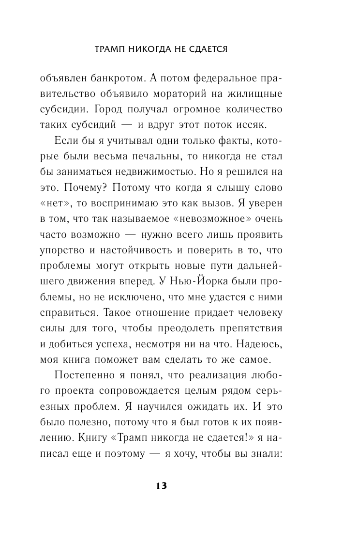 В этой книге Трамп рассказывает о своих самых больших неудачах и трудностях и делится принципами, с помощью которых он смог их преодолеть.