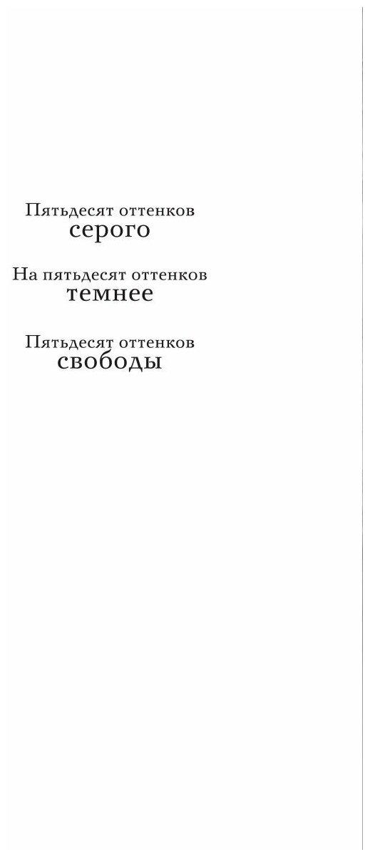 "Пятьдесят оттенков свободы" - третья книга трилогии Э Л Джеймс "Пятьдесят оттенков", которая стала бестселлером № 1 в мире, покорив читателей откровенностью и чувственностью. Чем закончится история Анастейши и Кристиана? Удастся ли им сохранить свою любовь?