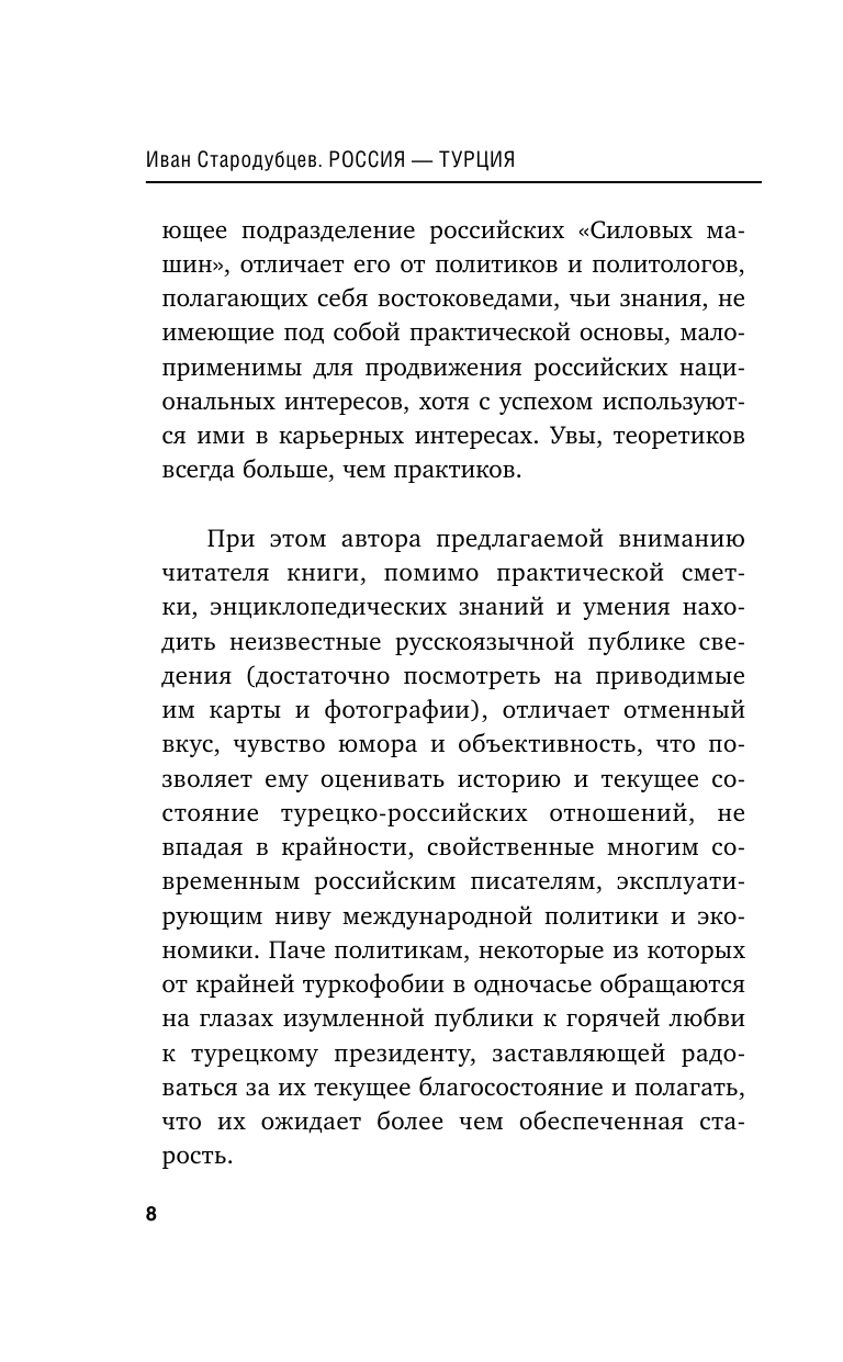 Историю взаимоотношений Турции и России вплоть до сегодняшнего дня, особенности экономического и политического развития Турции, происходящее на Ближнем Востоке автор буквально разложил по полочкам. Причем сделал это не сухо и нудно, как того можно было бы ожидать от писателя, затрагивающего серьезные темы, а с определенной долей иронии и юмора, тут и там используя ёмкие метафоры «не в бровь, а в глаз». Одним словом, книга написана очень доступно и будет интересна и понятна даже тем, кто не очень сведущ в политике. Читайте - не пожалеете! Автору респект!