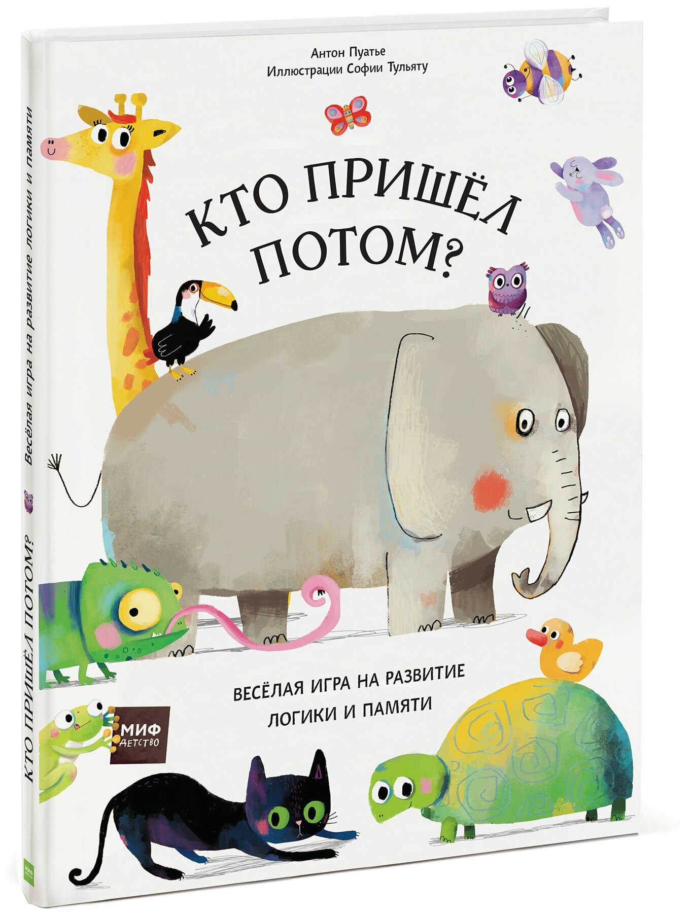 В книге собралась целая процессия симпатичных животных. Первым притопал слон с божьей коровкой на спине. За ним - тигр со своим другим псом. Кто ушёл? Кто пришёл потом? Эта интерактивная книжка-картинка развивает аналитические способности ребёнка - концентрацию, наблюдательность, память. Игра увлечёт даже самых маленьких, а простые фразы делают книгу идеальным вариантом для первого самостоятельного чтения. Обсуждайте животных, считайте, сравнивайте формы, размеры и цвета, а главное - попытайтесь угадать, кто же пришёл потом?