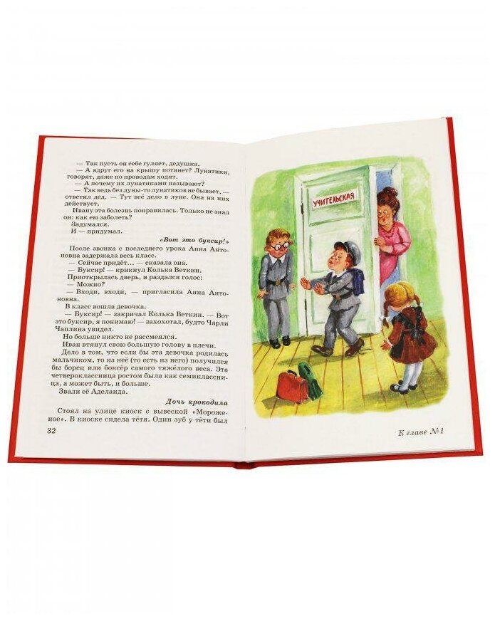 С детства помню эту книгу, поэтому купила дочке. Читали вместе, и я как будто вернулась в свое детство- смеялись и переживали одинаково- Аделаида -буксир для вытягивания Ивана Семенова по учебе не может не вызывать смеха, как впрочем, и сам главный герой)) Очень позитивная и смешная книга, рекомендую всем мамам и папам порадовать своих детей покупкой!
