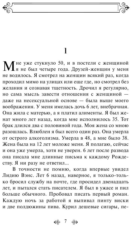 Вообще, Чарльз Буковски и известен своим голым и правдивым реализмом. Книга стоящая, если вам меньше лет 20-25, а в других случаях просто покажется вам пустой тратой времени. Пишет Чарльз своеобразно, но постепенно привыкаешь. ВНИМАНИЕ!! Много, очень много нецензурной лексики и эротических сцен, но сцены без соплей, это вам не 50ос. ПО крайней мере, когда ты его читаешь, то ему веришь и вживаешься в образ Генри Чинаски - главного героя этого произведения. Сам читал, впечатлнение спорное, но, в целом, не жалею.