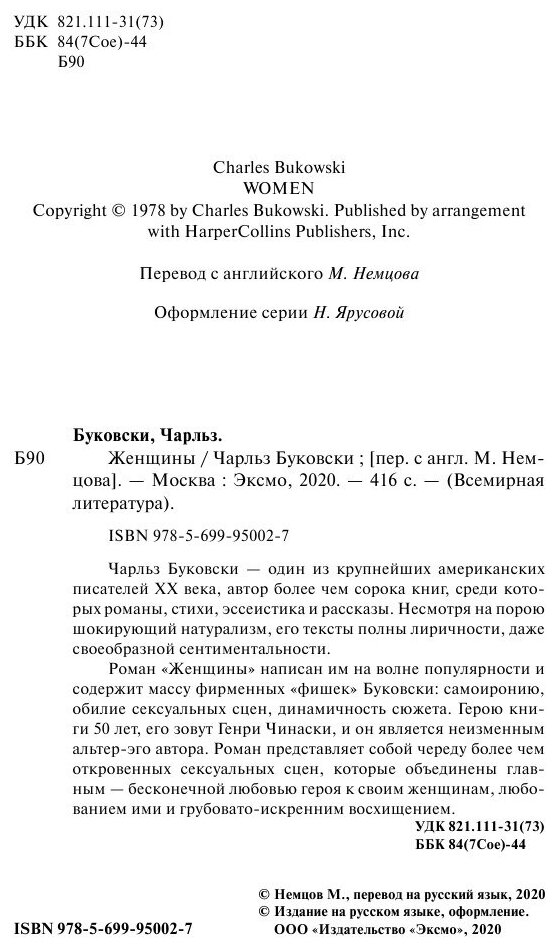 Книга: Женщины (Буковски Чарльз); ООО "Издательство "Эксмо", 2017