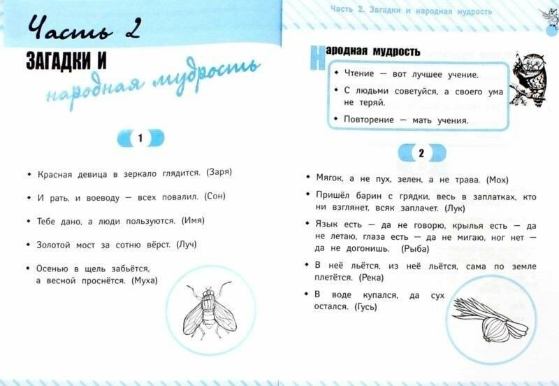 Купил для дочки 5-ти лет, которая просила книжку с загадками. Немного разочаровался, т.к. некоторые загадки как-то не совсем корректно составлены. Даже взрослому человеку непросто отгадать. А некоторые вообще вводят ребенка в заблуждение. Например, ботинки почему-то ночью под кроватью стоят? Понравилось, что в книге есть загадки из сказок. Хотя мы еще не все сказки, из которых есть загадки перечитали. Шрифт приемлемый для чтения 5-ти летним ребенком. Несомненным плюсом данной книжки стали разделы со звуками, считалками и скороговорками. Бумага белая, но тонкая, просвечивает другая страница.