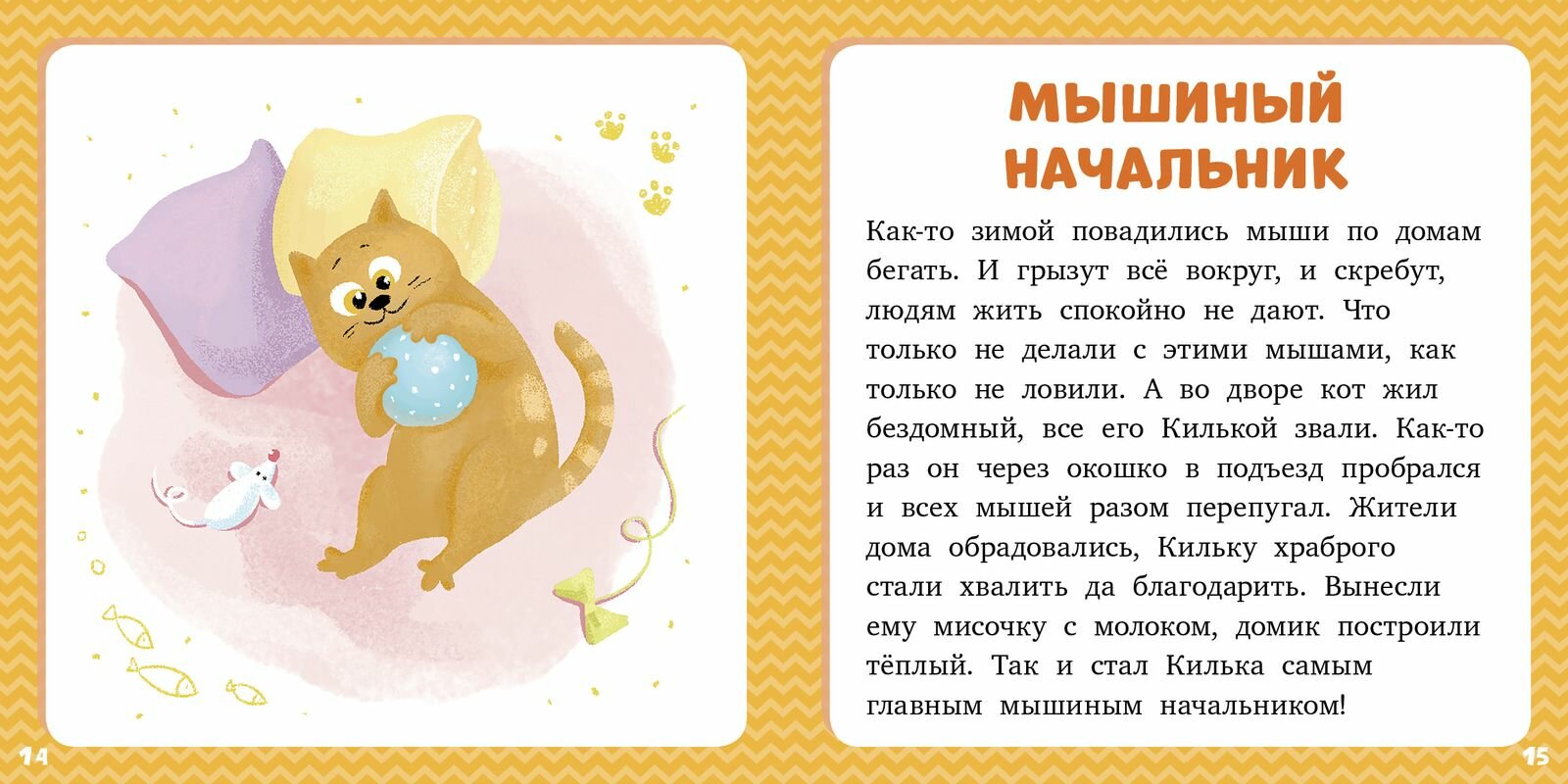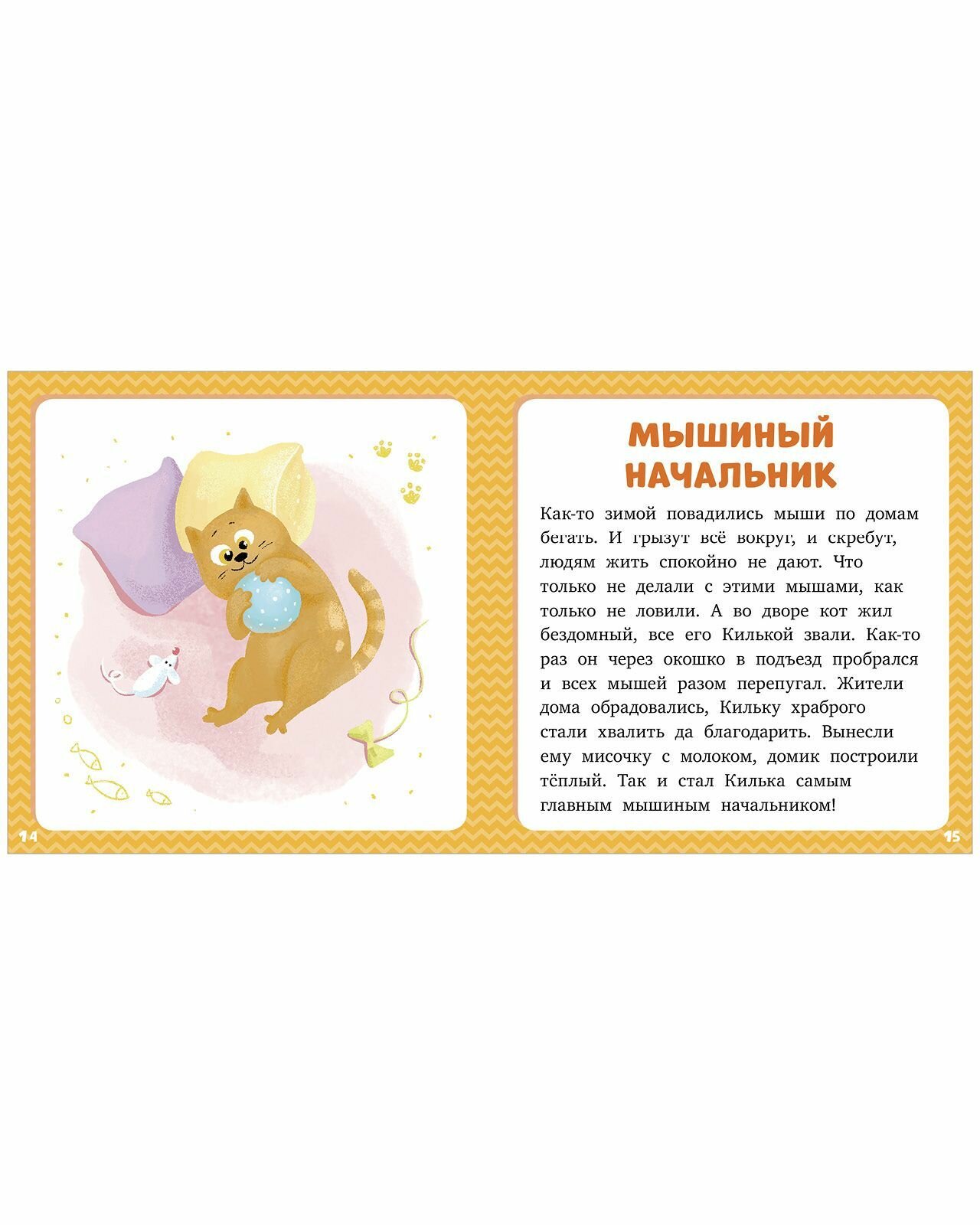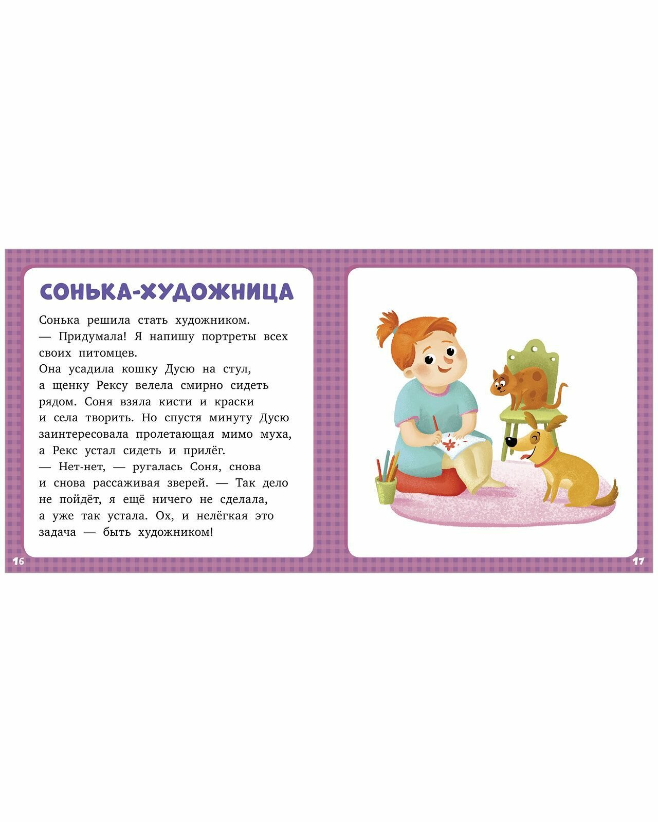 Шрифт в книге крупный, сами сказки короткие, а, значит, ребенок не успеет утомиться. На каждом развороте - одна сказка: на одной страничке крупная картинка, на другой - текст. Ребенок будет переворачивать страницу за страницей и видеть, что проделал большую работу.