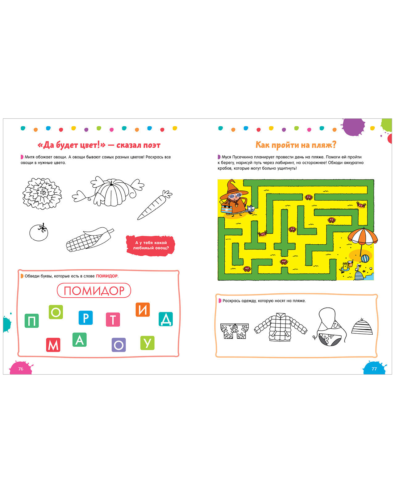 Составлена книга таким образом, чтобы ребенок мог ориентироваться в ней самостоятельно и путешествовал по ее страницам в том порядке, в каком ему захочется. Кто сказал, что нельзя одновременно учиться и развлекаться? Играя, ребенок намного лучше запоминает новую информацию! И ваш малыш не будет скучать, так что вы сможете отдохнуть.