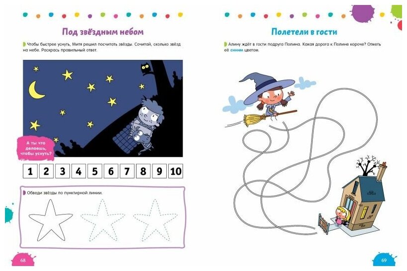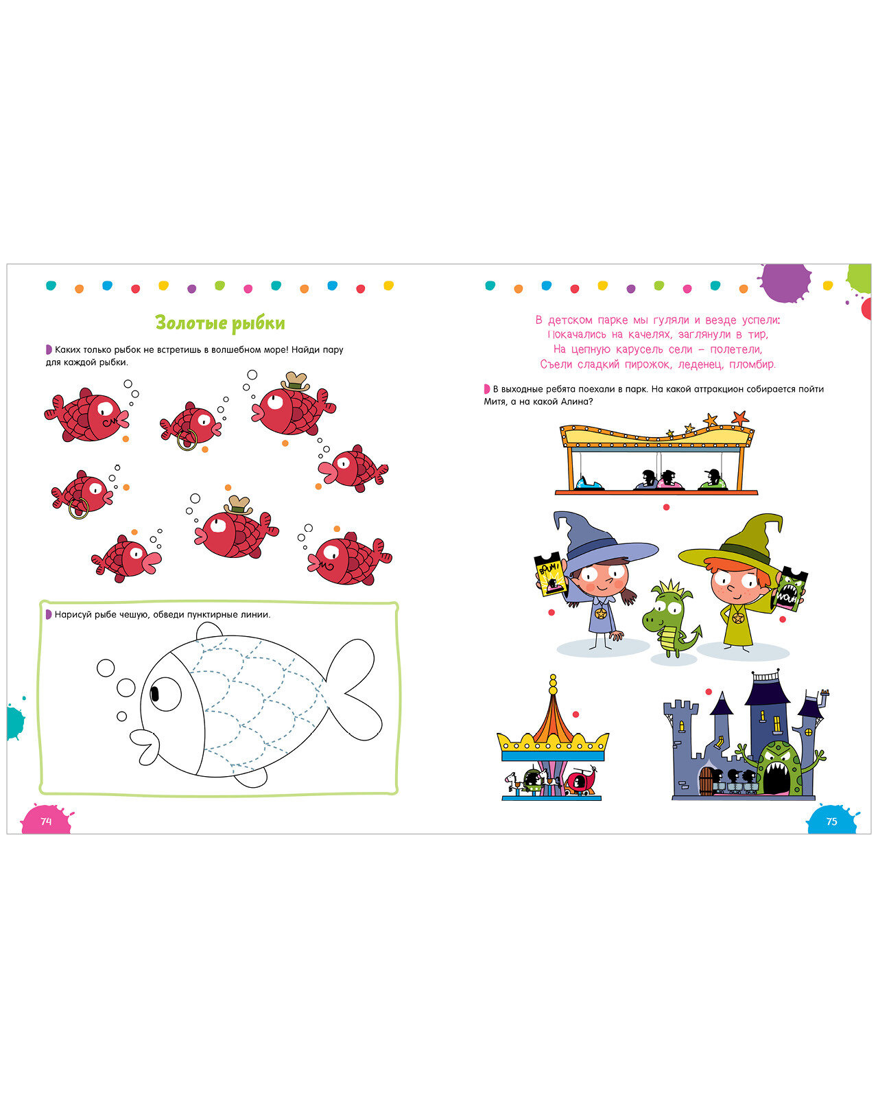 Задания интересные и разнообразные. Дочка 3,5 года с удовольствием занимается по книге. Сама просит семью Сказкиных поиграть.Здесь и буквы, и цифры и внимание, и логика. А также подготовка руки к письму.Иллюстрации яркие, персонажи забавные. Нам понравилось!