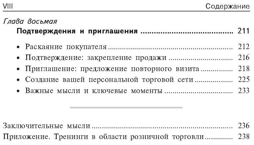 Книга очень легко читается! Всё по теме, никакой воды. Процесс продаж разбит на этапы и по-каждому очень толково с жизненными примерами, вопросами, моделью поведения. Искала что-то подобное простое и жизненное, но попадались в основном книги типа "войдите в транс покупателя и введите его в транс покупки". В этой книге вы такое не прочтете. Вам предложат список вопросов с чего начать, как разговорить, как снять возражения и как продать. После чтения книги появляется креативность в общении. Напечатана на хорошей белой бумаге в мягком переплете с бумажной обложкой. Приятное стильное оформление. Очень рекомендую продавцам.