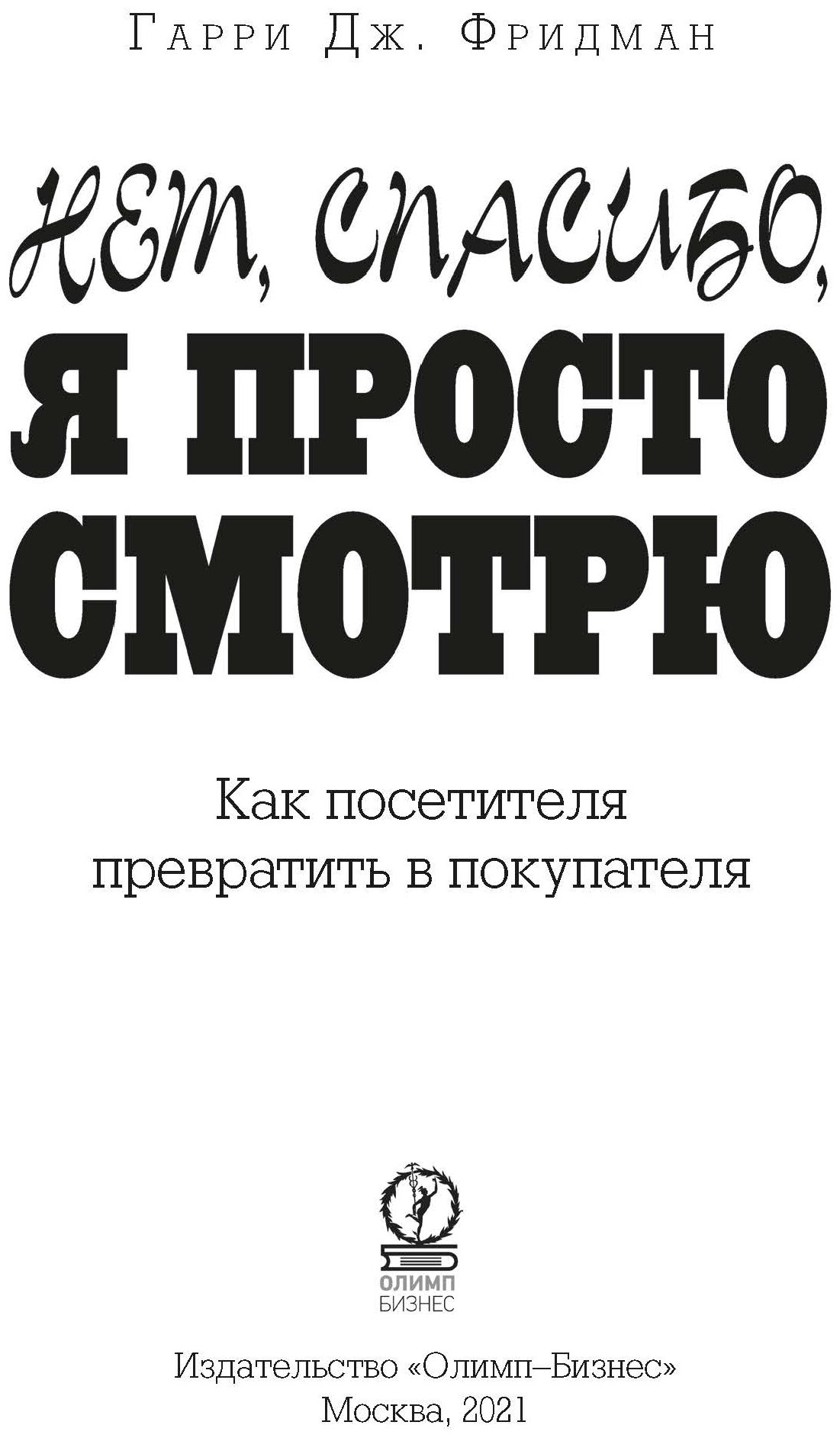 Нет спасибо я просто смотрю. Как посетителя превратить в покупателя (Гарри Дж. Фридман); Олимп-Бизнес, 2012