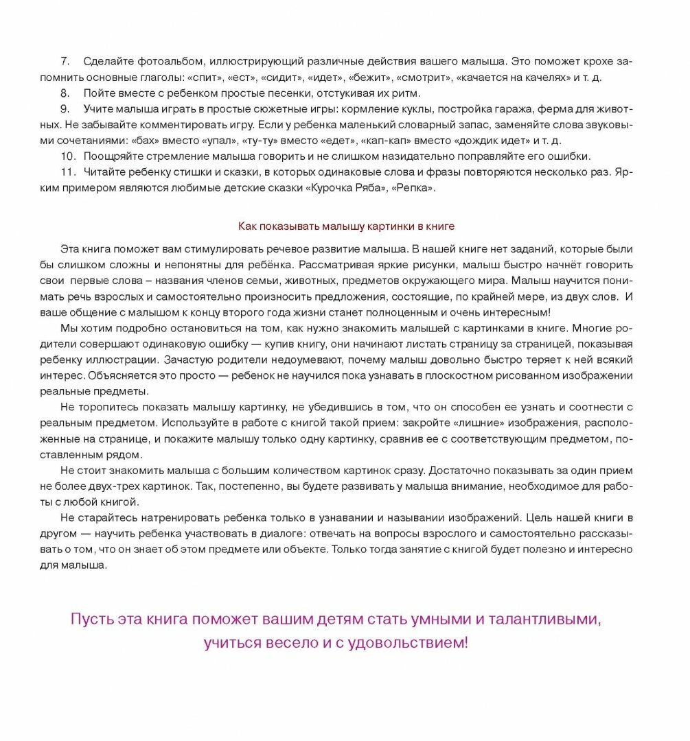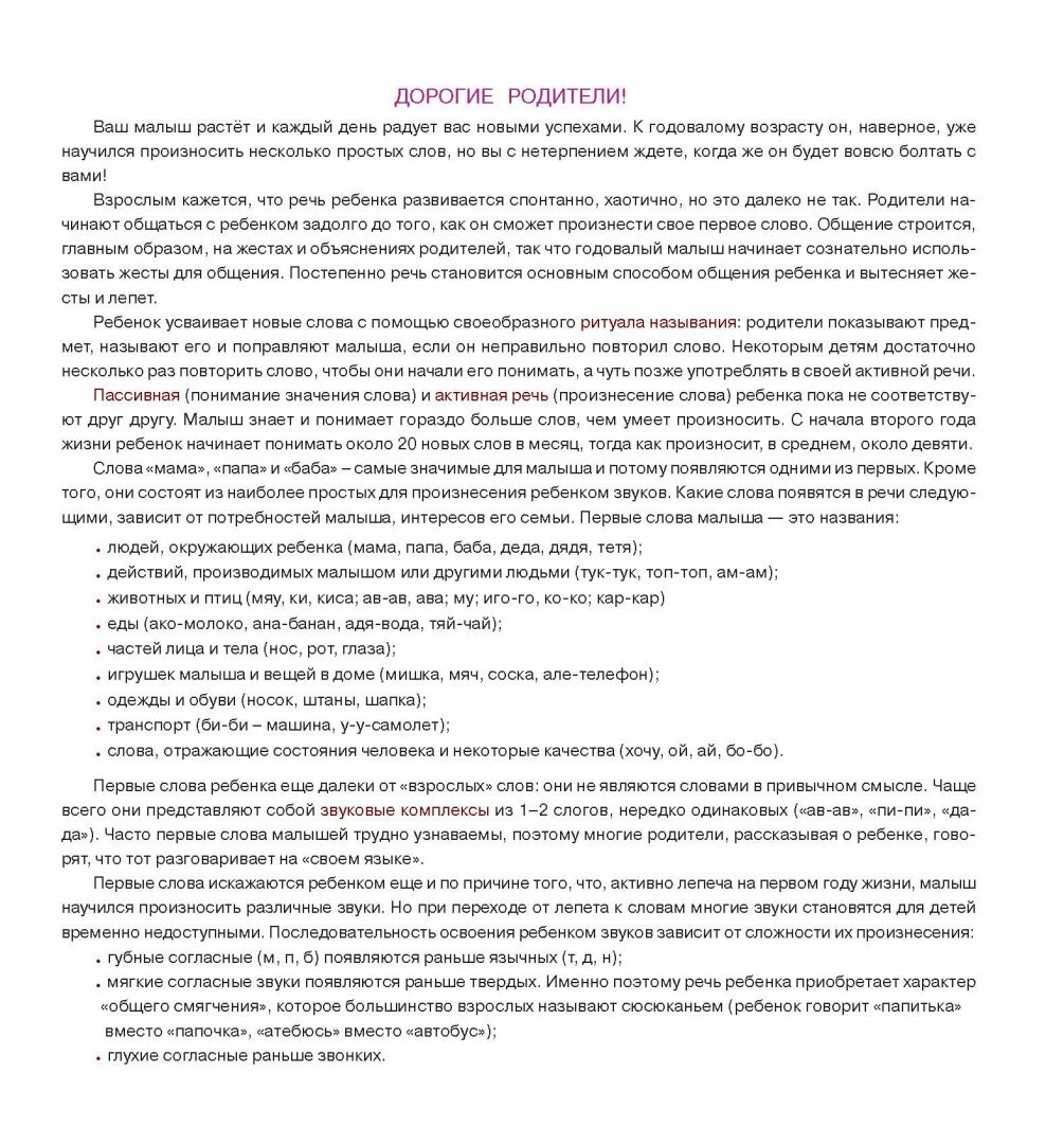 Эта книга создана для детей, которые только начали произносить свои первые слова. Выполняя с помощью взрослого задания, малыш быстро научится не только понимать речь взрослых, но и пополнит свой словарный запас, выучит названия членов своей семьи, животных, предметов окружающего мира.