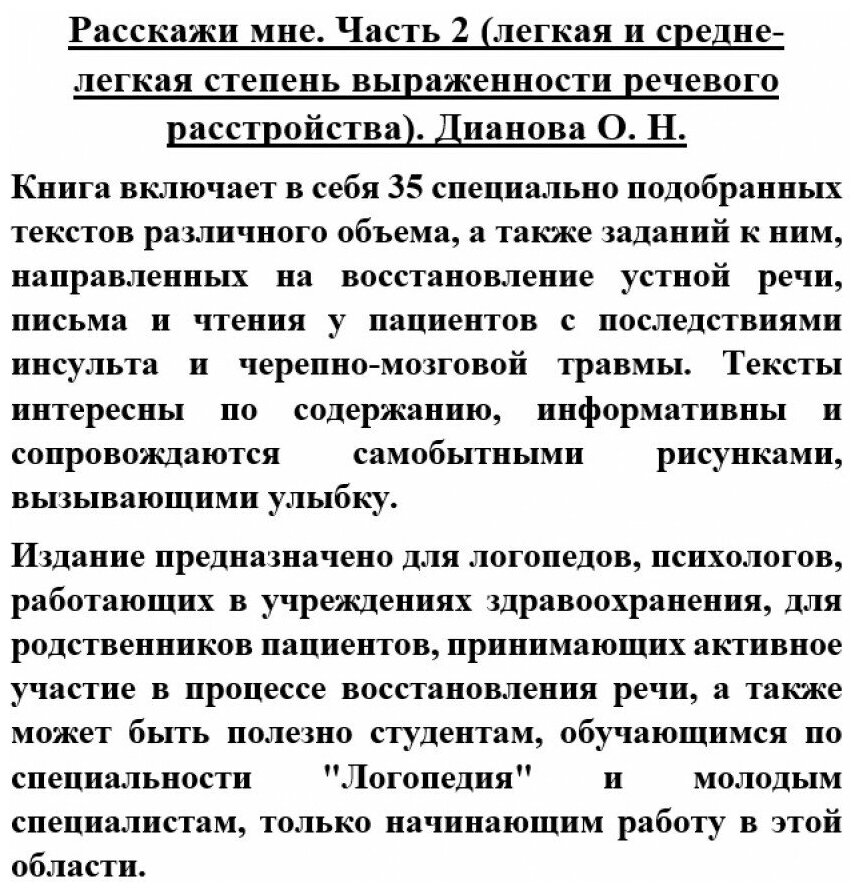 Расскажи мне. Часть 2. Сборник текстов для восстановления речи письма и чтения после инсульта... (Дианова Ольга Николаевна); Секачев, 2012
