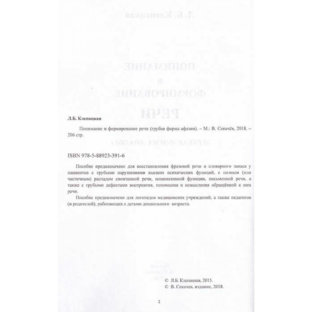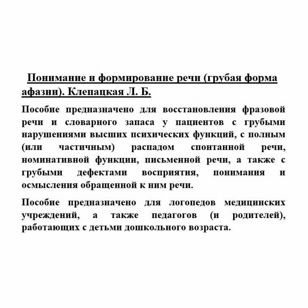 Понимание и формирование речи. Грубая форма афазии (Л. Б. Клепацкая); Интермедиатор, 2018
