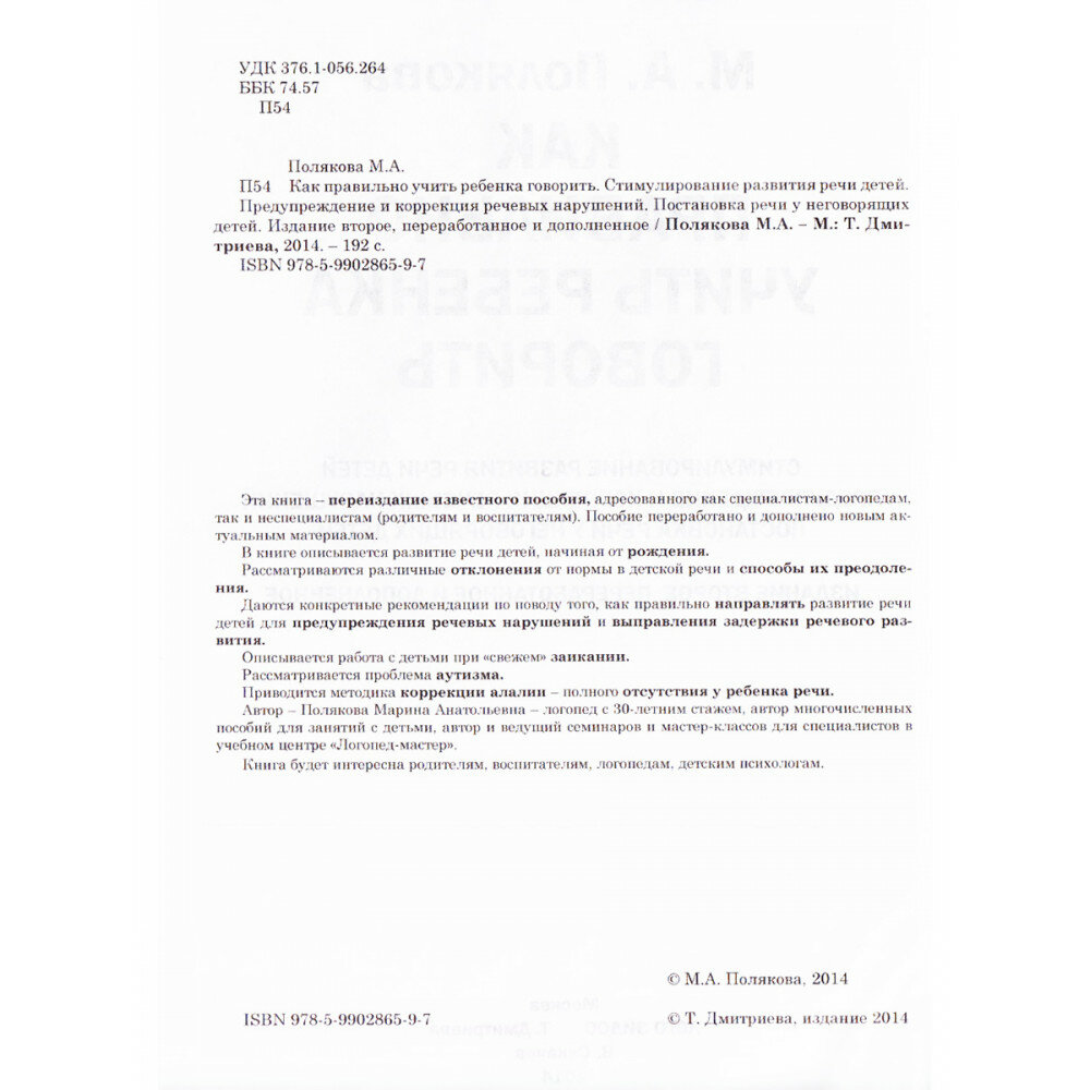 Как правильно учить ребенка говорить (Марина Анатольевна Полякова); ИП В. Секачев, 2014