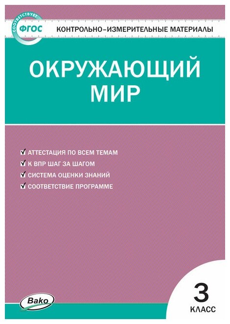 В пособии представлены контрольно-измерительные материалы по курсу "Окружающий мир" для 3 класса к учебнику А.А. Плешакова в тестовой форме. Все задания соответствуют программе общеобразовательных учреждений и требованиям ФГОС для начальной школы. Систематическая работа с материалами сборника позволит качественно подготовить учащихся к государственной аттестации. На предлагаемые материалы получены положительные отзывы после их апробации в трех регионах России.