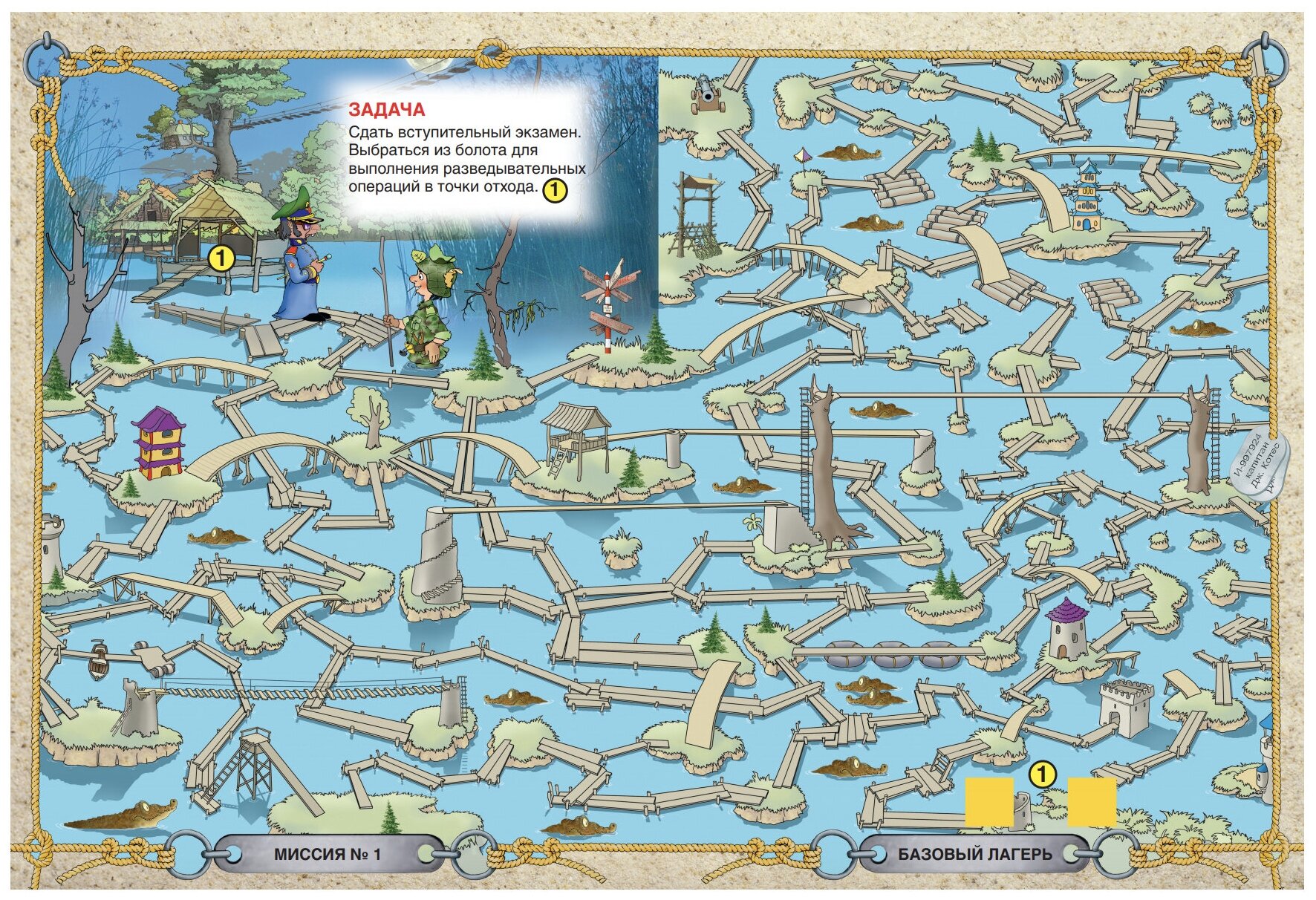 Книга предназначена для организации досуга и развития внимания, логики и воображения детей младшего и среднего школьного возраста. Большое количество логических задач и лабиринтов способствует развитию когнитивных способностей, положительно сказывается на формировании навыков ориентирования и прогнозирования. Раскраски, дорисовывание незавершенных изображений и прохождение лабиринтов помогают ребенку легче освоить чистописание. Забавные персонажи делают развивающие задачи и упражнения увлекательным приключением. Юные бойцы-разведчики пройдут необычные многоуровневые лабиринты, изменяя ход игры и принимая смелые решения, выполнят все миссии, получат внеочередные воинские звания и станут командирами групп спецназа. - Боец-разведчик, ты должен пройти все миссии. - Каждый раз, принимая решение, ты изменяешь ход игры. - У тебя есть возможность исправлять ошибки и проходить отдельные миссии заново. - Переходи с одной миссии на другую в местах, отмеченных желтыми квадратами, которые следует предварительно вырезать. - Успешно реализованные миссии поощряются внеочередными воинскими званиями. - Тот, кто пройдет все миссии до конца, становится командиром группы спецназа.
