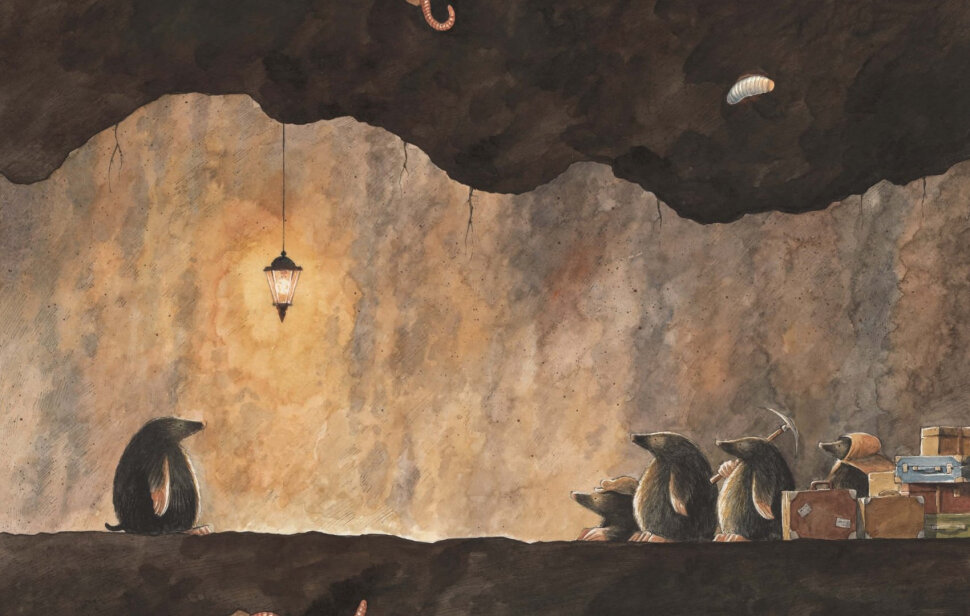 Очень красивая книга для преданных ценителей творчества Торбена Кульманна,которых не смутит практически полное отсутствие текста.Эта книга-картинка повествует о ухудшении экологии путём проецирования нашего общества в подземный Город кротов.То,как мы уничтожаем природу,отражается в уничтожении подземных недр кротами.Стоит не только задуматься,но и принять к сведению,и действовать...Поскольку текст отсутствует,по книге вполне можно придумать и свою историю,тем более возрастной ценз на книге указан 0+.Формат книги такой же,как у Линдберга и Армстронга,несмотря на то,что изданы разными издательствами.Бумага плотная мелованная,не бликует при рассматривания.