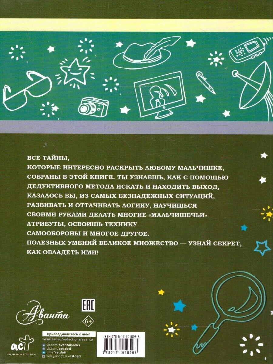 Как уметь за себя постоять и при этом оставаться галантным и воспитанным? Как работает детектор лжи? Как прочесть невидимое послание? Как зарядить батарейку и восстановить CD- и DVD-диски? Что такое азимут и как его вычислить? Как изготовить фоторобот? Как собственными руками сделать компас, телефон или часы? И, наконец, в чем же заключается секрет знаменитого дедуктивного метода? "Как сложно!" - воскликнешь ты. И будешь не прав! Благодаря этой прекрасно иллюстрированной книге ты справишься с любыми трудностями. Она, открыв все "мальчишеские" тайны, поможет тебе овладеть множеством полезных умений.