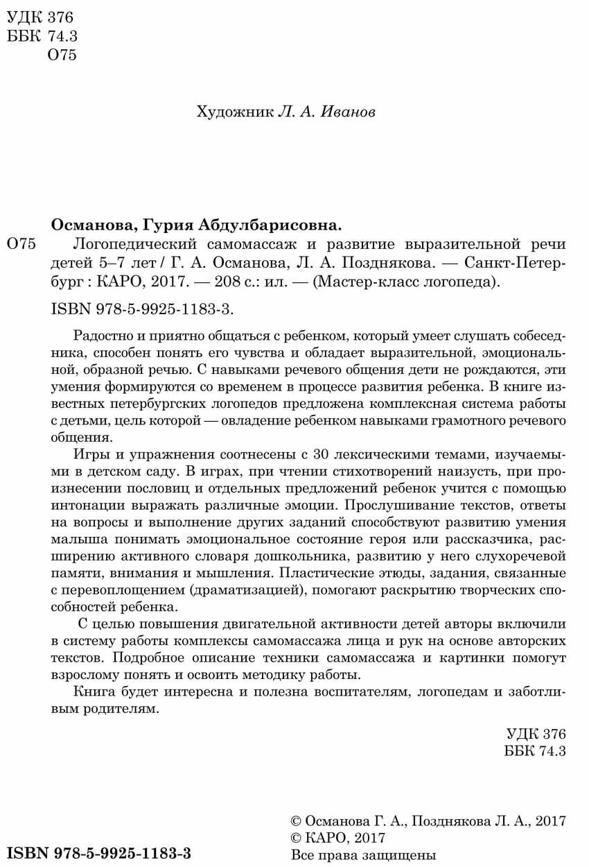 Логопедический самомассаж и развитие выразительной речи детей 5-7 лет (Г. А. Османова); КАРО, 2017