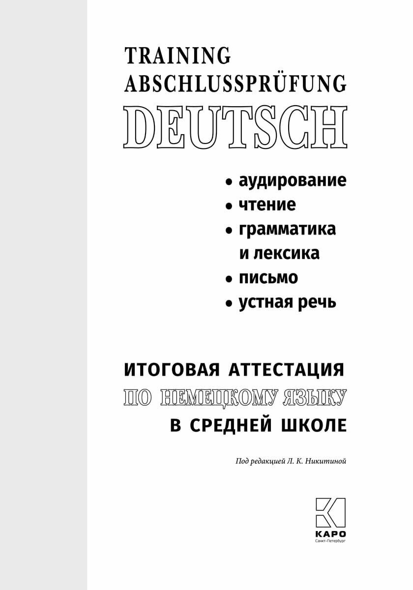 Немецкий язык. Итоговая аттестация в средней школе (Никитина Лариса Константиновна, Михайлова Оксана Валентиновна, Молчанова Ирина Васильевна); Каро, 2017