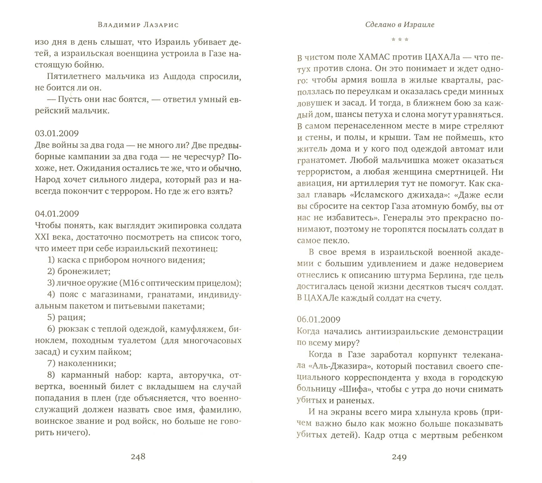 В книге "Сделано в Израиле" смешано много жанров: сугубо дневниковые записи соседствуют с военными репортажами, стихами и афоризмами, литературные и телевизионные рецензии - с некрологами и эпиграммами, переводы с иврита и английского языка - с откликами на злобу дня. И все это превращается в портрет Израиля в натуральную величину.